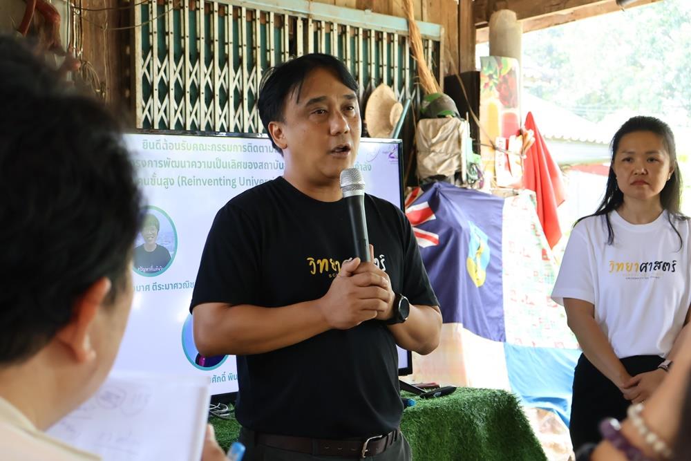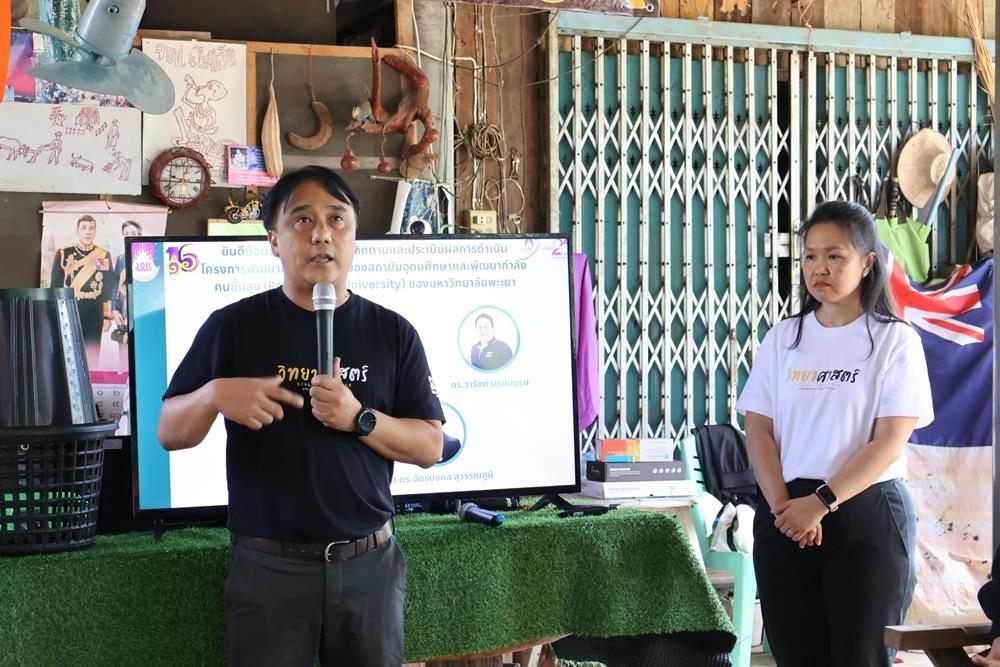 On Friday, October 24, 2025, a team from the School of Science, University of Phayao, presented the progress of the research project “Community Model Development Project for Greenhouse Gas Reduction with Science and Technology” to the project monitoring and evaluation committee. The presentation took place at a local farmer's house (20, Moo 11) in Mae Na Ruea Sub-district, Mueang District, Phayao Province.
