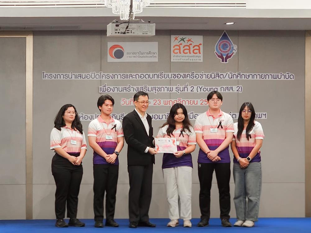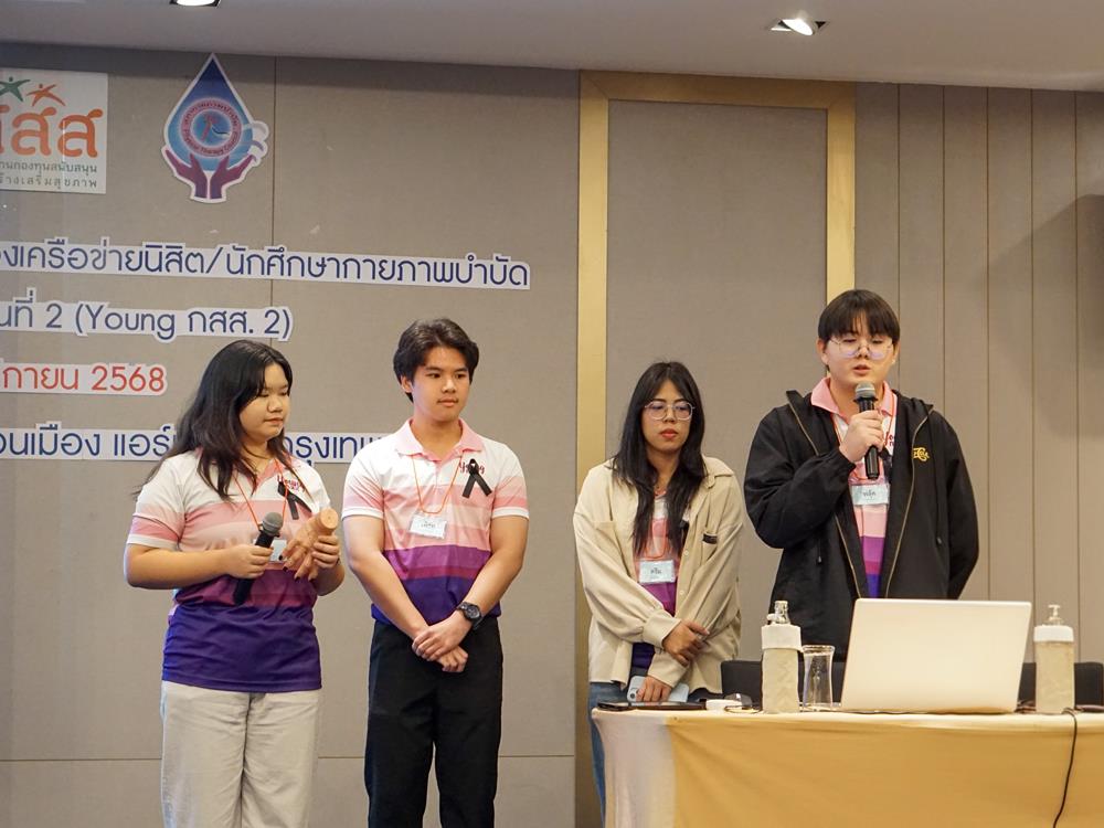 The Department of Physical Therapy, School of Allied Health Sciences, University of Phayao, proudly nominated five fourth-year students—Ms. Piyapan Pinitchai, Ms. Paphichaya Wisutmetakul, Ms. Kittikan Munkhong, Mr. Suppanath Phonsin, and Mr. Seddhawut Photikit—to participate in the Young กสส. (Young KSS), Batch 2 Program. This prestigious initiative serves as a national platform for cultivating the potential of physical therapy students from 17 leading academic institutions across Thailand. The program was held from 22–23 November 2025 at the Amari Don Muang Airport Hotel, Bangkok.