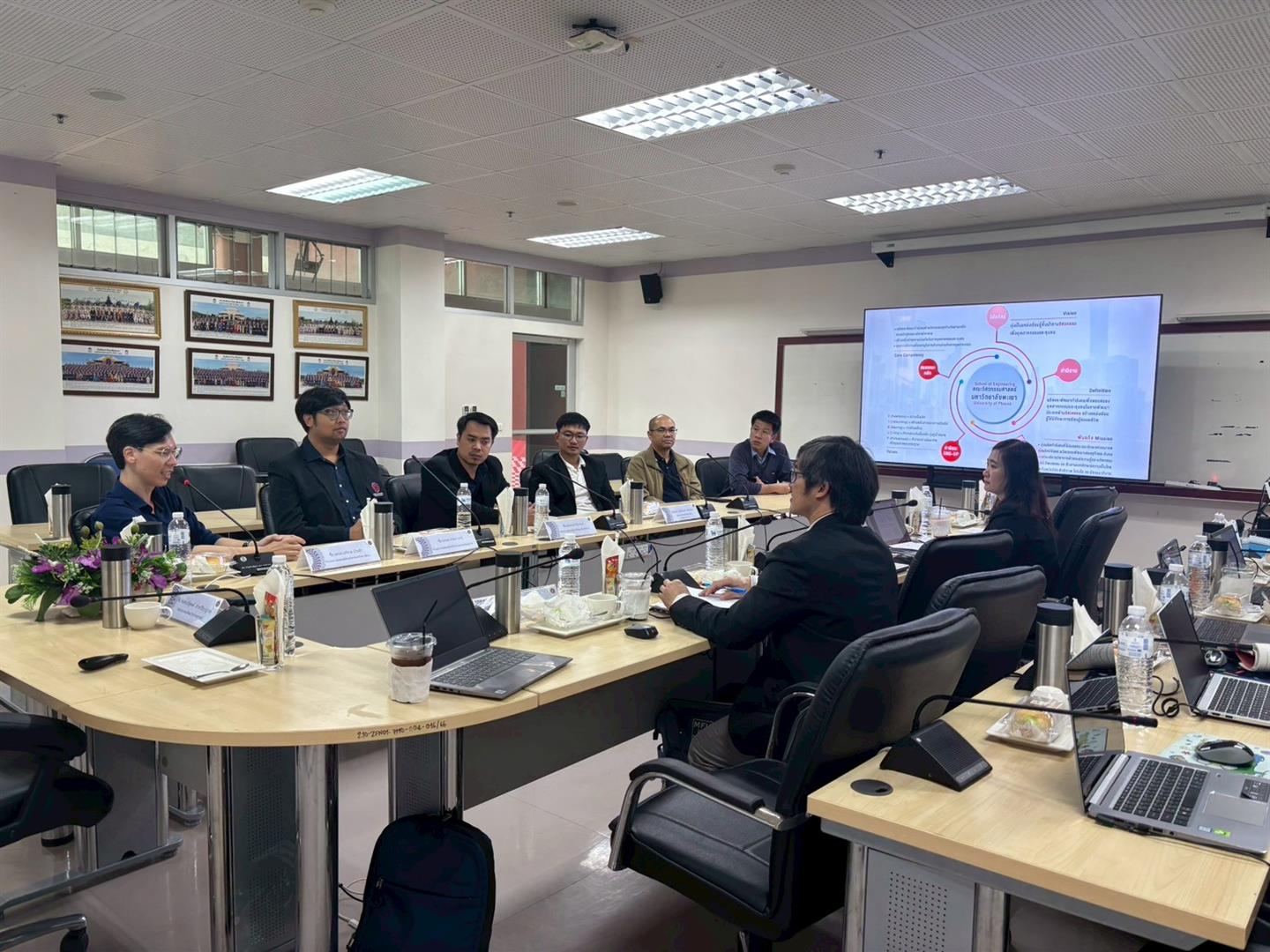 The evaluation process was led by Assoc. Prof. Dr. Nattapong Damrongwiriyanupap, Dean of the School of Engineering, together with the executive team. They presented a comprehensive performance overview for the past year, including administration and governance, student development, research achievements, academic services, and resource management. The review was conducted in alignment with the EdPEx framework, which emphasizes process excellence and results-driven continuous improvement.