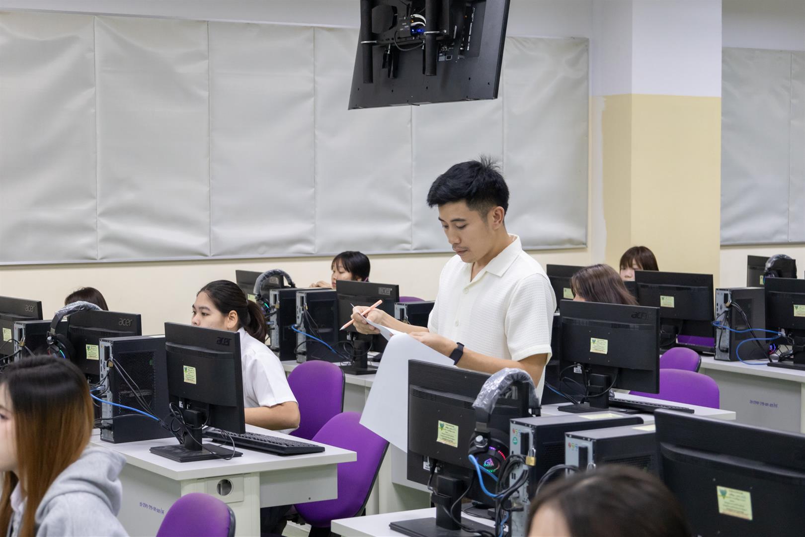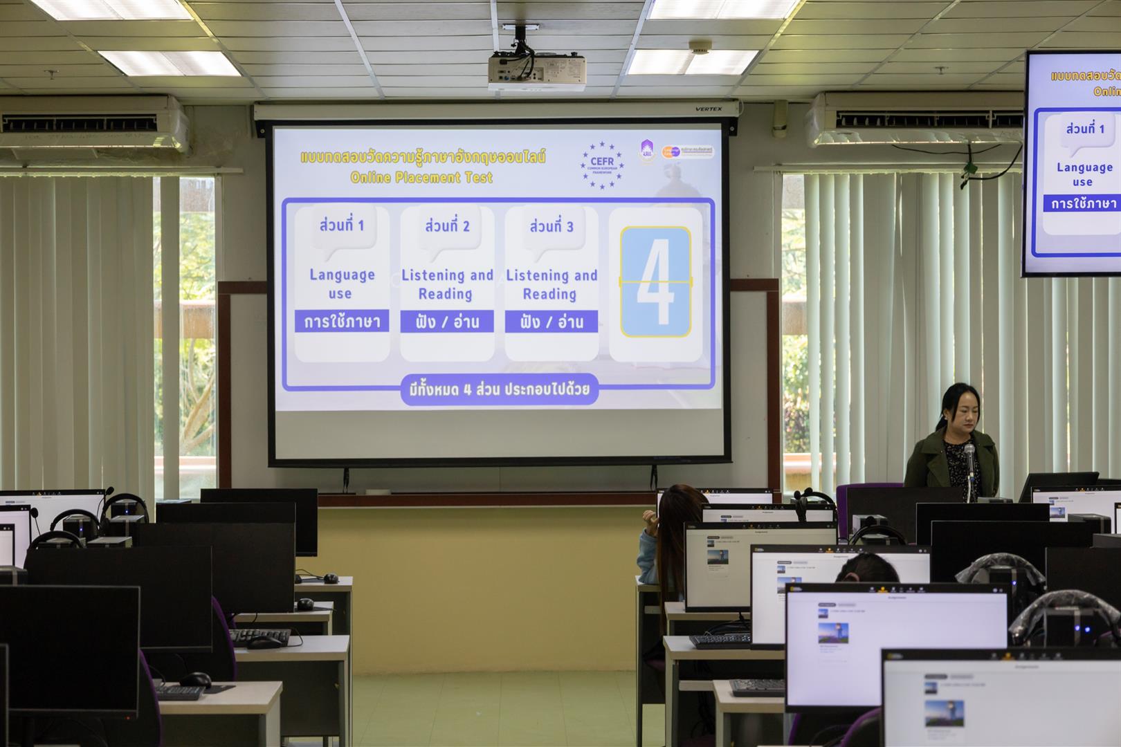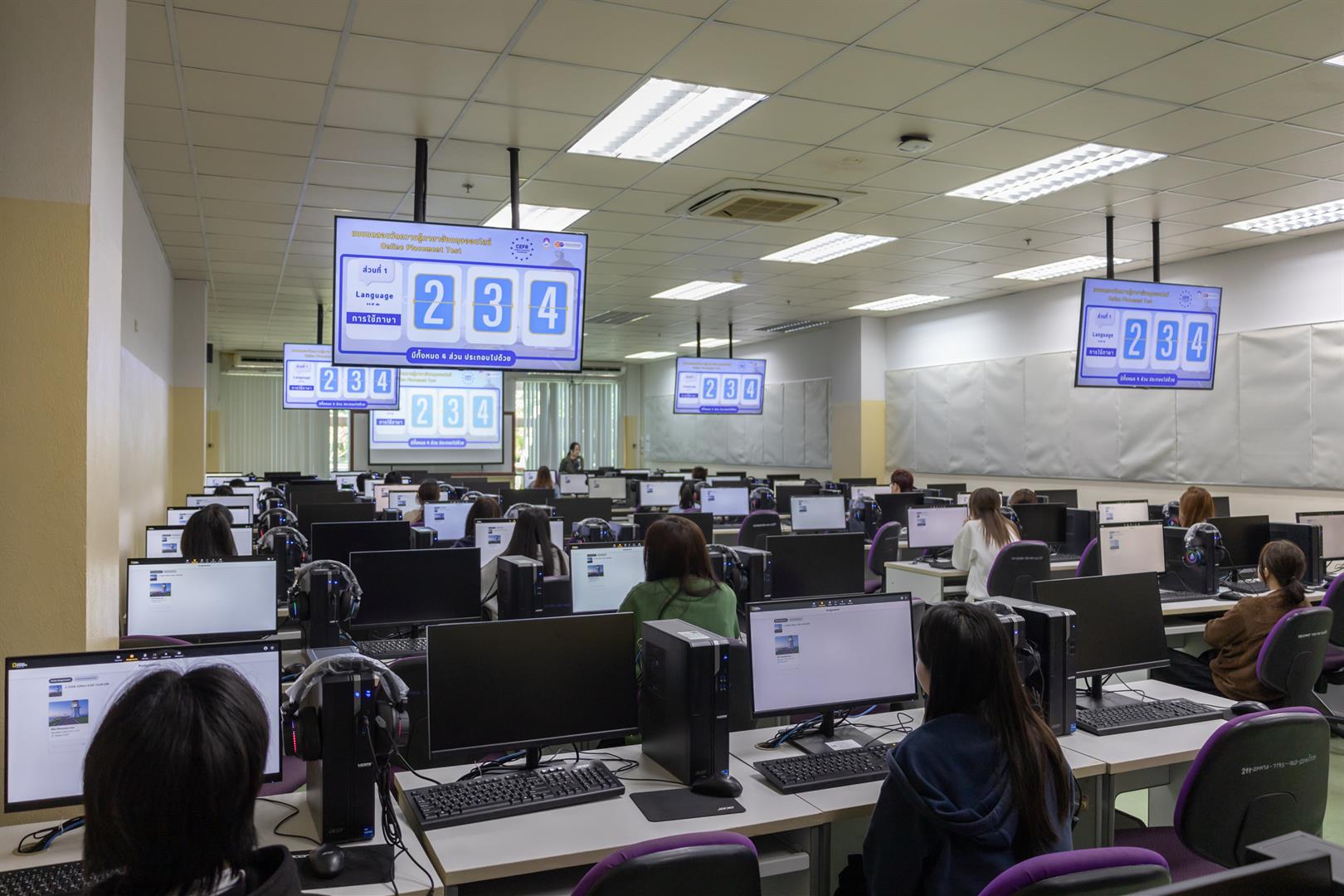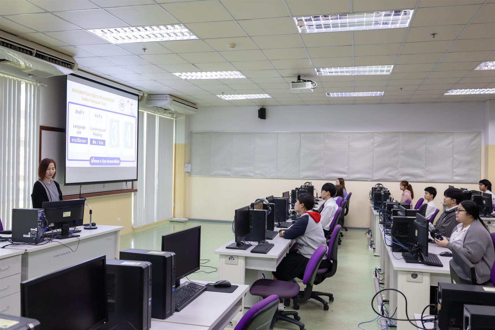 The School of Liberal Arts Language Center, University of Phayao, led by Dr. Chanapa Duangfai, Vice Dean for Special Affairs along with Language Center Committee, recently conducted an English proficiency assessment for students from the School of Business and Communication, School of Science, School of Medical Science, School of Engineering, School of Liberal Arts, and School of Architecture and Fine Arts. The assessment took place on November 22–23, 2025, and involved a total of 2,097 students.