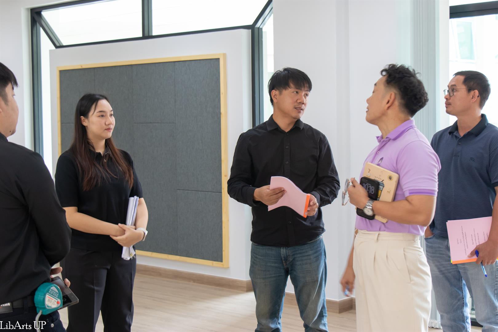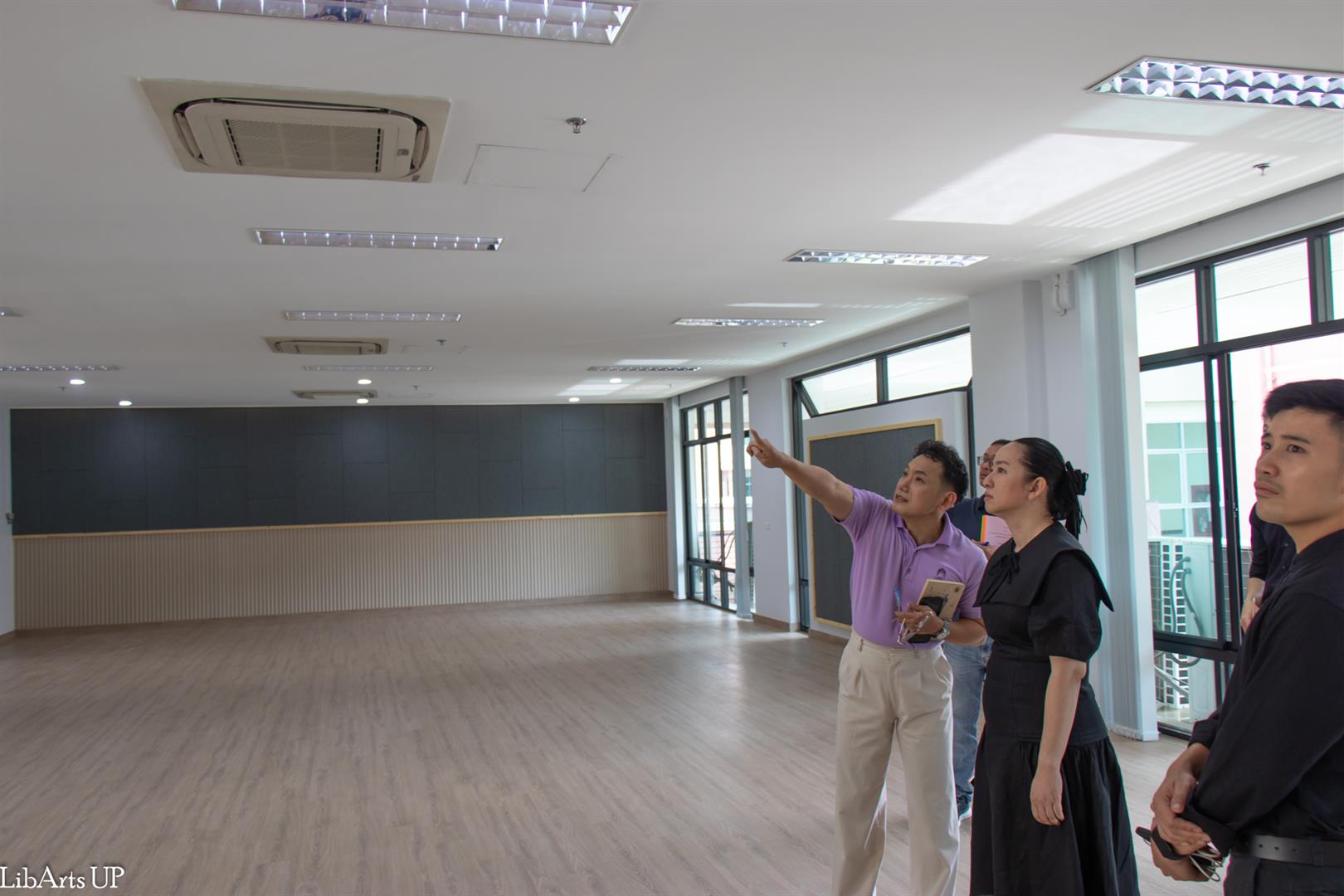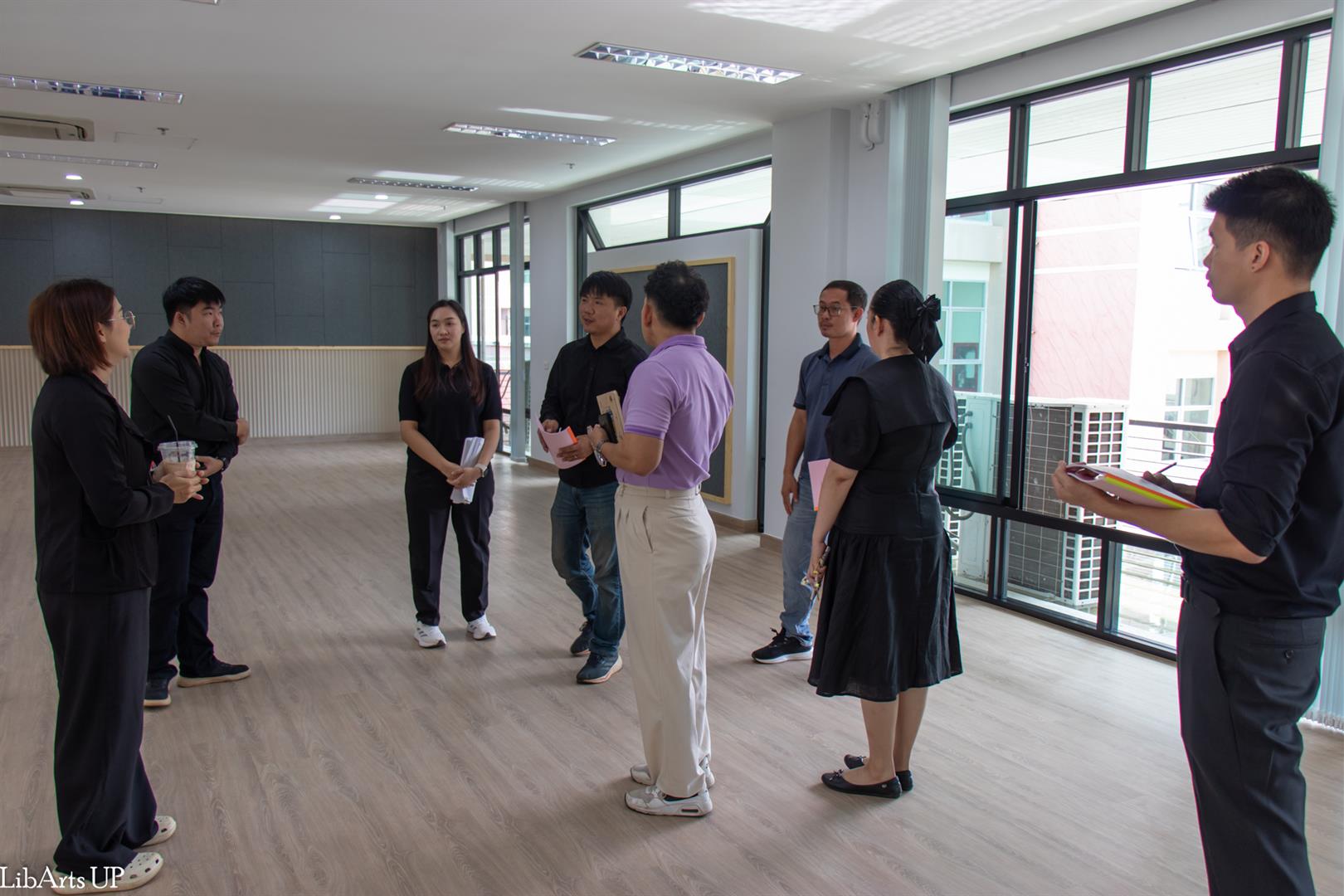 The Inspection Committee of the School of Liberal Arts, led by Dr. Ittiphol Buayoi (Assistant Dean and Committee Chair) and Dr. Chanapa Daungfai (Associate Dean for Special Affairs), together with the committee members, site supervisors, and the contractor, conducted a formal inspection of the renovated 120-Seat Language Testing Center (CE12303-CE12305), School of Liberal Arts, University of Phayao.