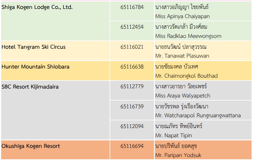 On Saturday, December 20, 2025, three students from the Japanese Program of the School of Liberal Arts including Miss Rattanakorn Chootangton, Miss Kantasorn Champadaeng, and Miss Chutikan Phuttrong departed for Japan to commence their Cooperative Education (Co-op) placement at Togari Onsen Ski Resort Co., Ltd. The placement is scheduled to run from December 20, 2025, to April 3, 2026, spanning approximately 16 weeks of professional immersion.