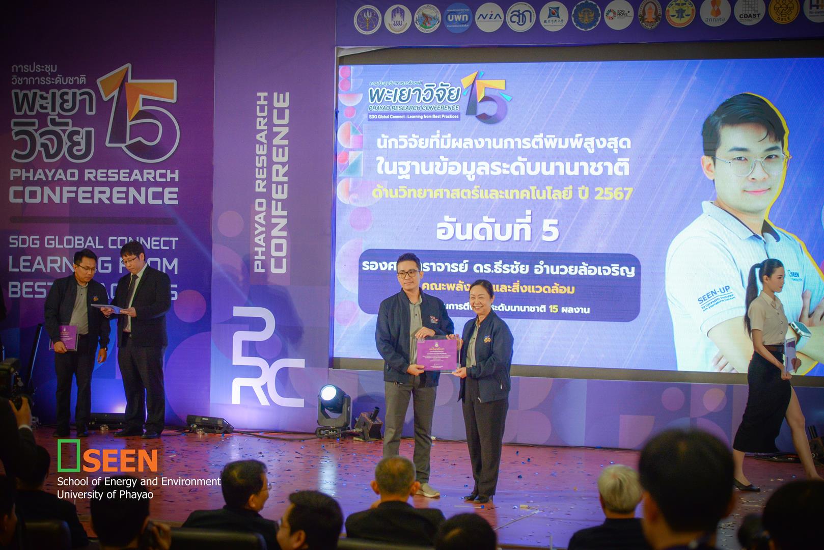 The School of Energy and Environment, University of Phayao, extends its congratulations to Assoc. Prof. Dr. Teerachai Amnuaylojaroen on receiving 5th Place for the Highest Number of Publications in International Databases in the Field of Science and Technology for the year 2024, with a total of 15 published works.