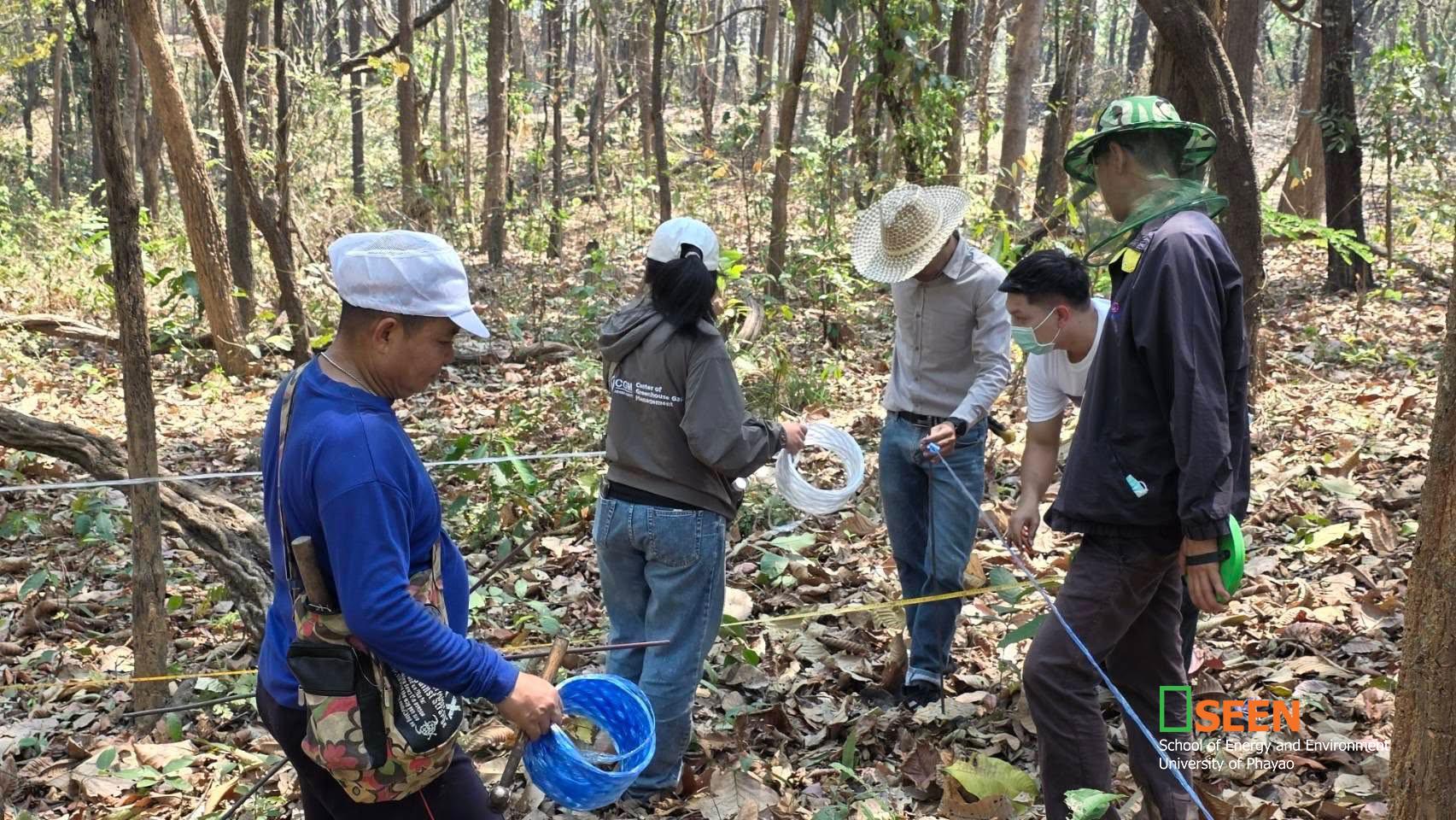 The workshop aimed to enhance participants’ knowledge and practical skills in measuring carbon sequestration in forest ecosystems. The program featured a lecture by Dr. Nittaya Cha-un from King Mongkut’s University of Technology Thonburi, along with field-based training conducted in the forest area of the RSPG project site under the supervision of Dr. Prus Pingmuanglek from the University of Phayao.