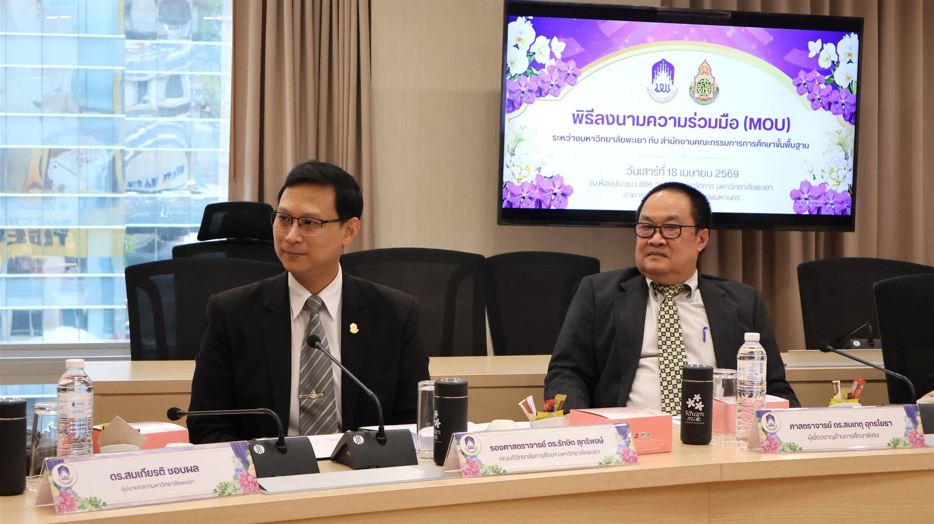 On April 18, 2026, the University of Phayao, led by Associate Professor Dr. Supakorn Pongbangpho, President of the University of Phayao, signed a Memorandum of Understanding (MOU) with Phattrawan Phattraborwawut, Deputy Secretary-General of the Office of the Basic Education Commission (OBEC), at the L806 Meeting Room, School of Management, Wave Place Building, Bangkok.