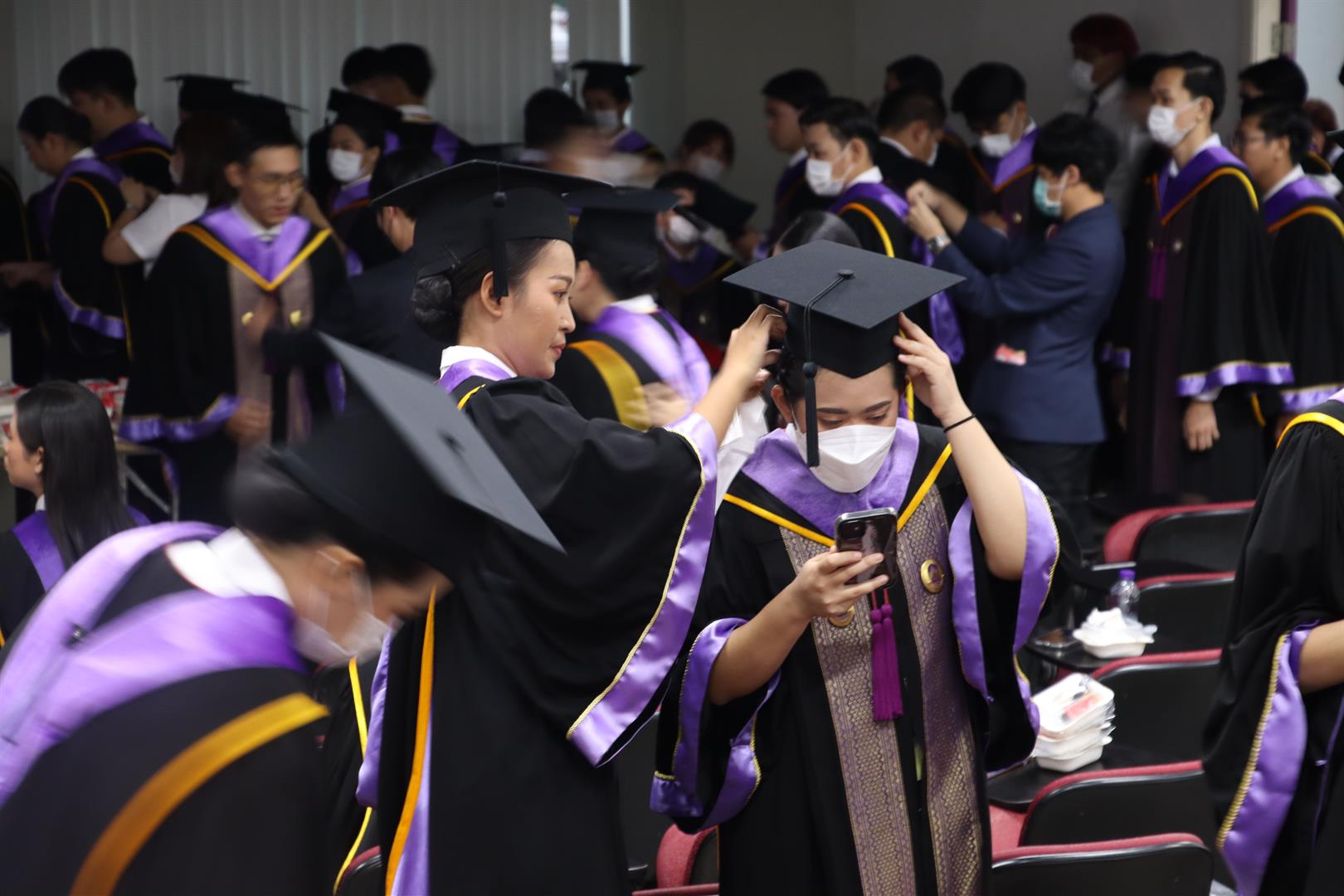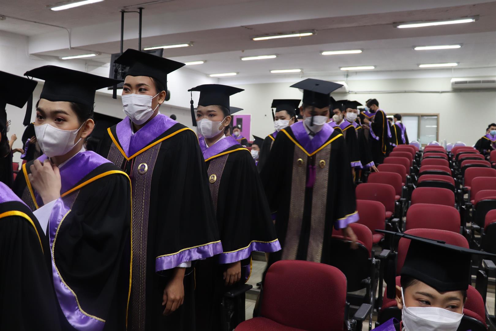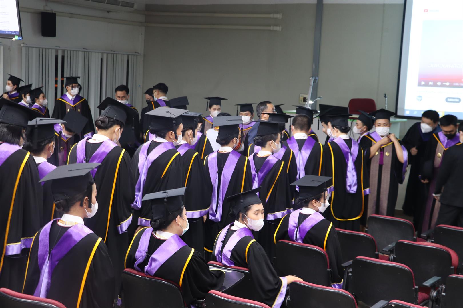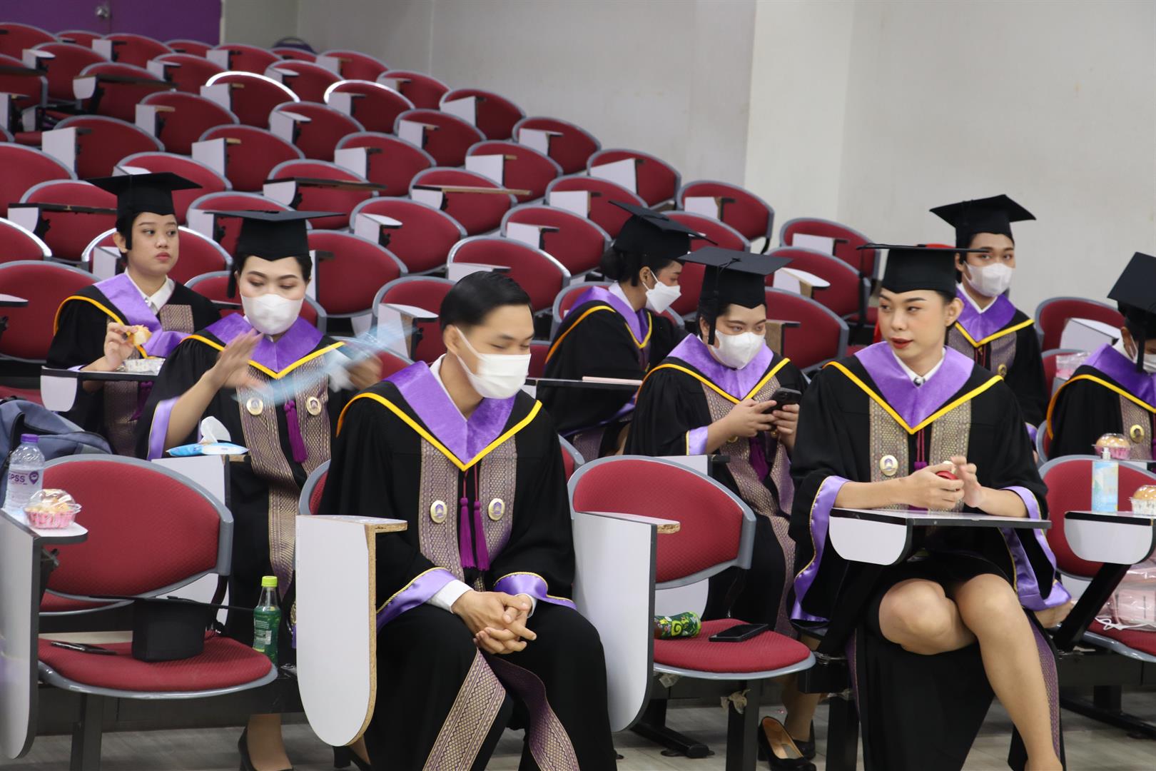โดยระหว่างวันที่ 15-16 กุมภาพันธ์ 2566 รองศาสตราจารย์ ดร.มนตรา พงษ์นิล คณบดีคณะรัฐศาสตร์และสังคมศาสตร์ นำทีมผู้บริหาร คณาจารย์ บุคลากรสายสนับสนุน และนิสิตปัจจุบัน เข้าเตรียมความพร้อมให้กับบัณฑิตและมหาบัณฑิตในการเข้ารับมอบปริญญาบัตร ประจำปีการศึกษา 2564 ณ ห้องภูกามยาว 2 และ 3 (PKY 2 & 3) ซึ่งบรรยากาศเต็มไปด้วยความอบอุ่น และผู้รับมอบปริญญาบัตรทุกคนต่างตั้งใจฝึกซ้อม เพื่อให้การรับมอบปริญญาบัตรในวันที่ 17 กุมภาพันธ์ 2566 สมบูรณ์แบบที่สุด