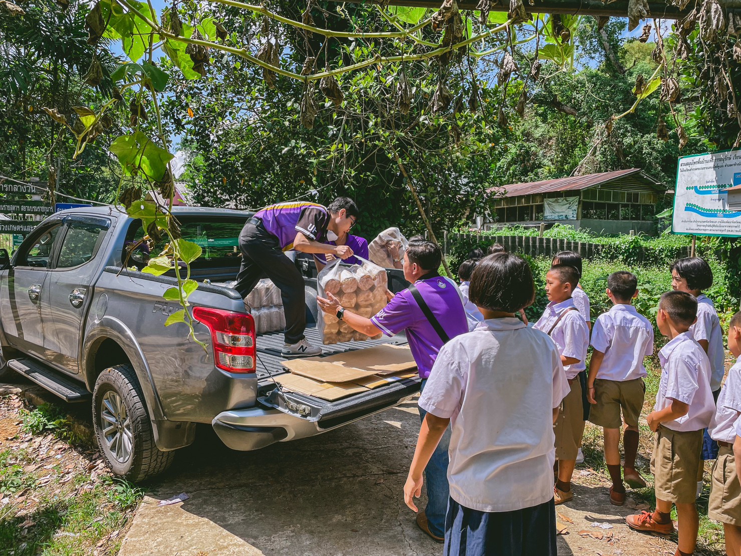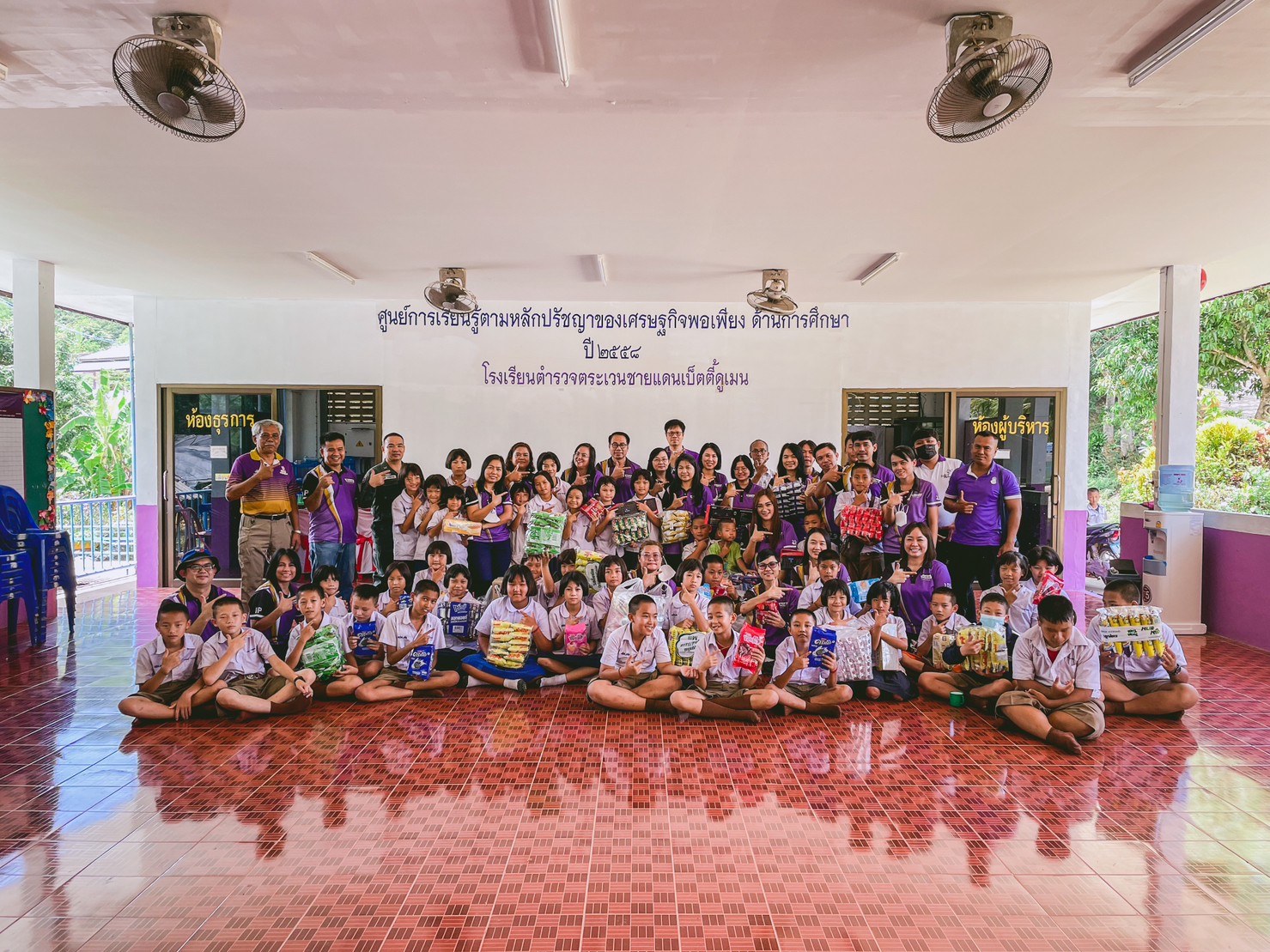On 30th May, 2023, School of Agricultural and Natural resources led by Asst. Prof. Dr. Wipornpan Nuangmek (Dean), Asst. Prof. Dr. Payungsuk Intawicha (Associate Dean for Research, Innovation and Technology transfer), Dr. Bunraum khitka (Associate Dean for Policy and Organization development) with staffs and students visited "Betty Dumen Border Patrol Police School, Pha Chang Noi sub-district, Pong District, Phayao province" to conducted an academic service activities and brought consumer goods to donate to the students of Betty Dumen Border Patrol Police School.