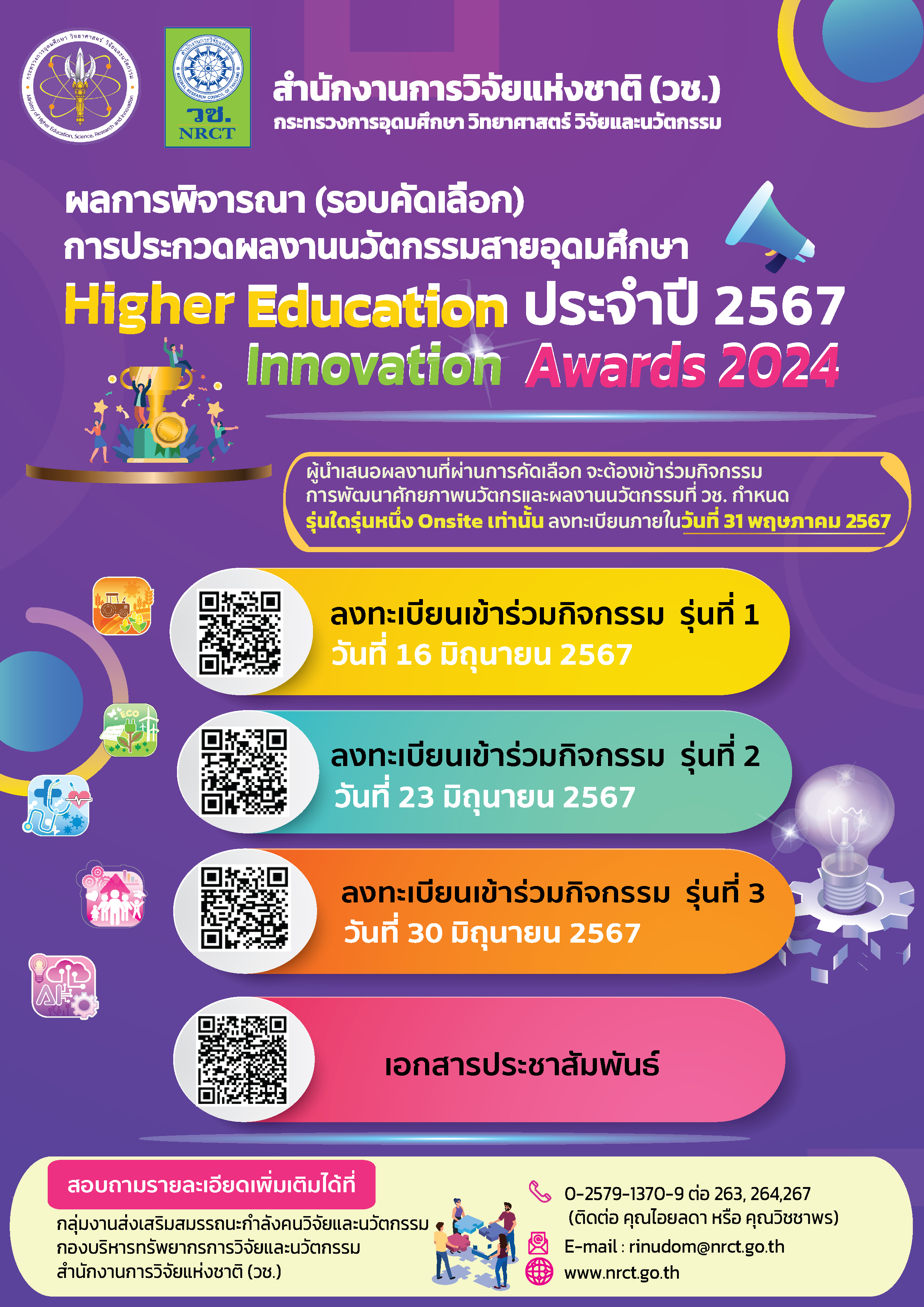 คณะเกษตรศาสตร์และทรัพยากรธรรมชาติ มหาวิทยาลัยพะเยา ขอแสดงความยินดีกับผลงานทีมนิสิตสาขาวิชาเทคโนโลยีการเกษตร ผ่านการพิจารณา (รอบคัดเลือก) ในการส่งผลงานเข้าประกวดนวัตกรรมสายอุดมศึกษา ประจำปี 2567 (Higher Education Innovation Awards 2024) จากสำนักงานการวิจัยแห่งชาติ