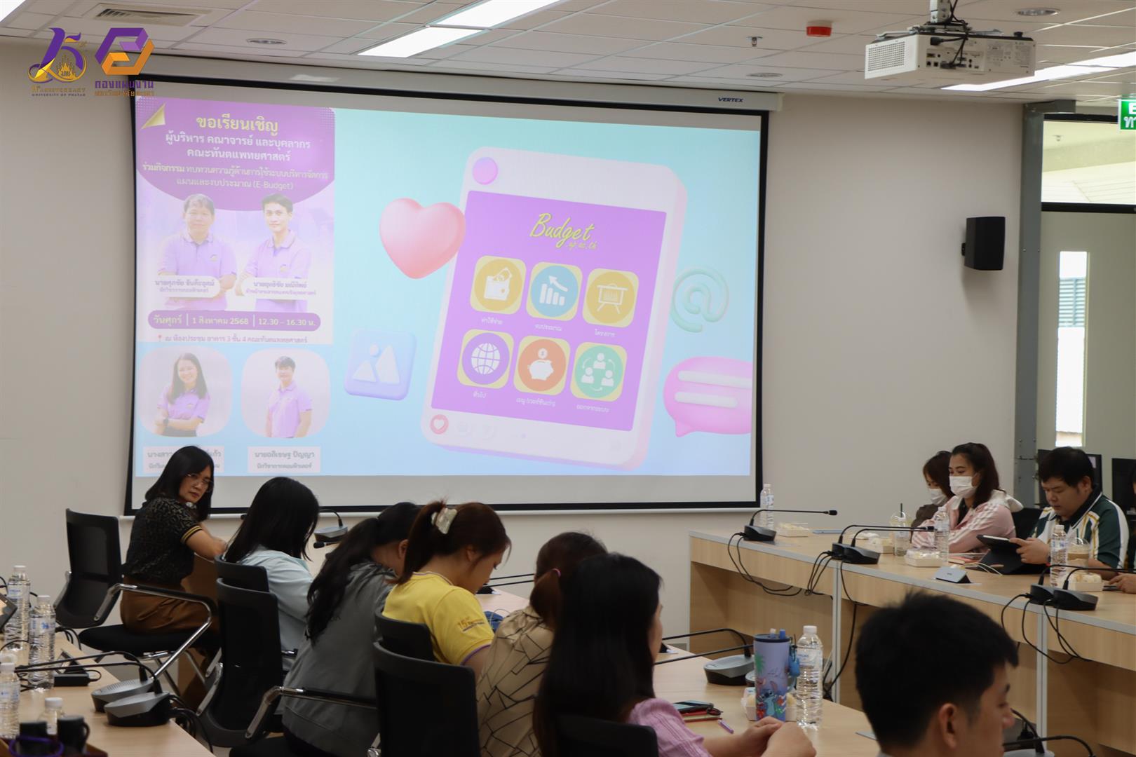 วันที่ 1 สิงหาคม 2568 เวลา 13.00 น. งานสารสนเทศเชิงยุทธศาสตร์ กองแผนงาน มหาวิทยาลัยพะเยา นำโดย นายฤทธิชัย มณีทิพย์ หัวหน้างานสารสนเทศเชิงยุทธศาสตร์ และนายศุภชัย จันต๊ะอุตม์ นักวิชาการคอมพิวเตอร์ ได้รับเกียรติเป็นวิทยากรบรรยายในหัวข้อ "การบริหารจัดการแผนและงบประมาณในระบบ e-Budget" ให้แก่บุคลากรคณะทันตแพทยศาสตร์ มหาวิทยาลัยพะเยา ในกิจกรรมทบทวนความรู้ด้านการใช้ระบบบริหารจัดการแผนและงบประมาณ (e-Budget) เพื่อเสริมสร้างความรู้ ความเข้าใจ และทักษะในการใช้งานระบบดังกล่าวให้แก่บุคลากรของคณะฯ โดยมีวัตถุประสงค์เพื่อให้สามารถใช้งานระบบ e-Budget ได้อย่างถูกต้อง ครบถ้วน และมีประสิทธิภาพ ณ ห้องประชุม อาคาร 3 ชั้น 4 คณะทันตแพทยศาสตร์