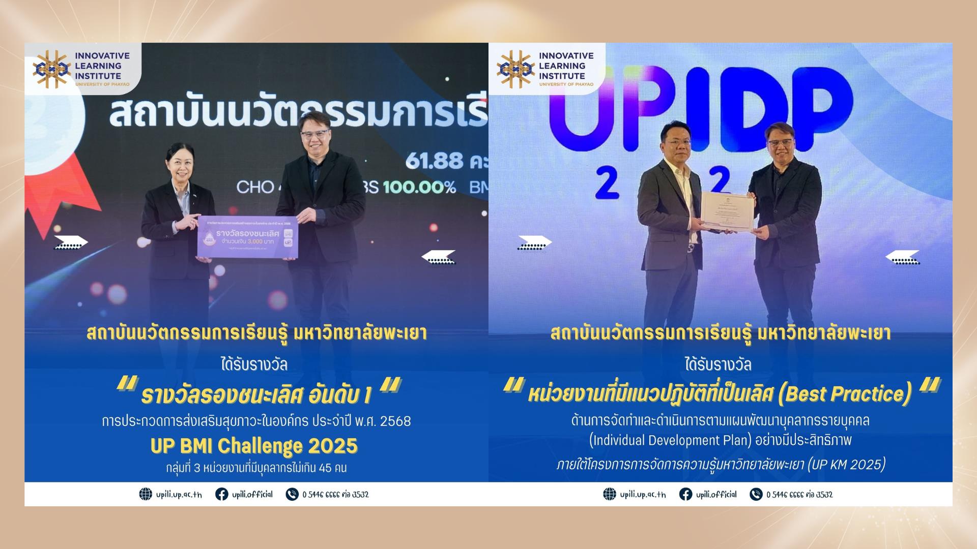 พร้อมกันนี้ สถาบันนวัตกรรมการเรียนรู้ ยังได้รับ “รางวัลหน่วยงานที่มีแนวปฏิบัติที่เป็นเลิศ (Best Practice)” จากโครงการ UP KM 2025 ในด้านการจัดทำและดำเนินการตามแผนพัฒนาบุคลากรรายบุคคล (Individual Development Plan: IDP) อย่างมีประสิทธิภาพ เป็นการยกระดับศักยภาพบุคลากรและส่งเสริมการเรียนรู้ตลอดชีวิต สอดคล้องกับ SDG 4: การศึกษาที่มีคุณภาพ และแนวคิด Green Economy