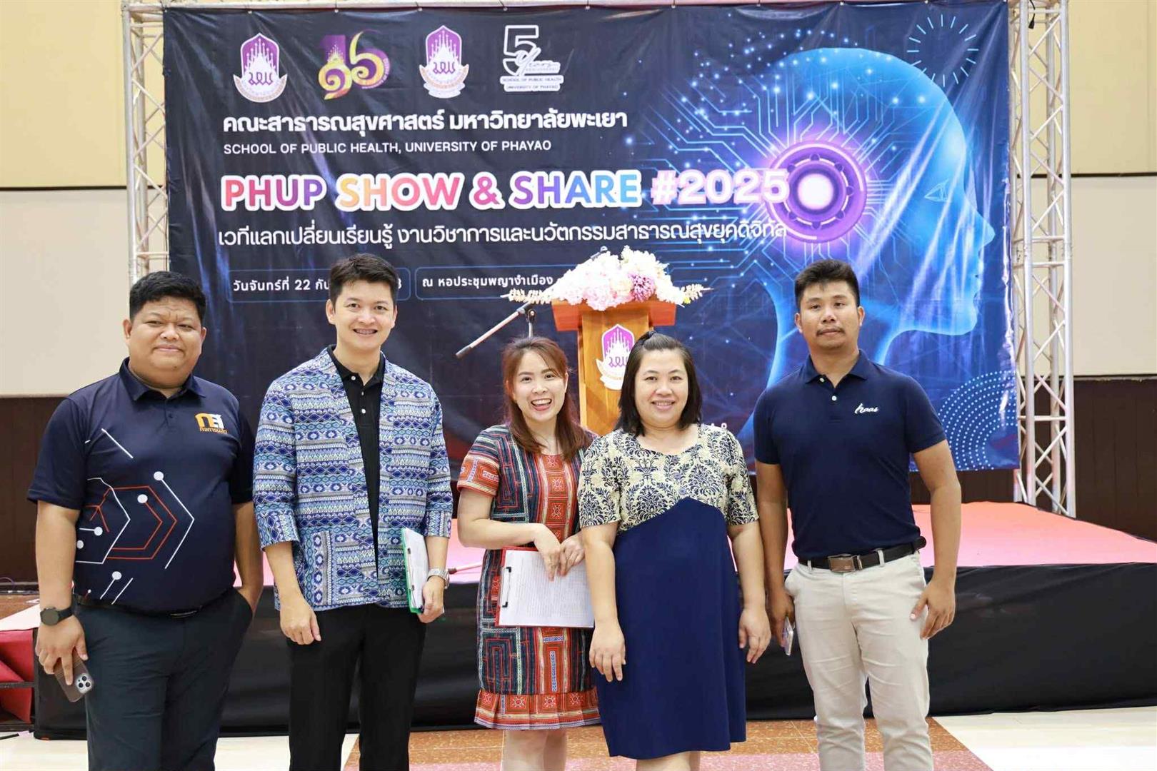 วันที่ 22 กันยายน 2568 รองศาสตราจารย์ ดร.สุภกร พงศ์บางโพธิ์ อธิการบดีมหาวิทยาลัยพะเยา มอบหมายให้ ศาสตราจารย์ ดร.เสมอ ถาน้อย รองอธิการบดีฝ่ายวิจัยและนวัตกรรม เป็นประธานเปิดงาน “PHUP Show & Share #2025: เวทีแลกเปลี่ยนเรียนรู้ งานวิชาการและนวัตกรรมสาธารณสุขยุคดิจิทัล” จัดโดยคณะสาธารณสุขศาสตร์ มหาวิทยาลัยพะเยา โดยมีผู้ช่วยศาสตราจารย์ ดร.สมคิด จูหว้า คณบดีคณะสาธารณสุขศาสตร์ กล่าวรายงานวัตถุประสงค์การจัดโครงการ ณ หอประชุมพญางำเมือง