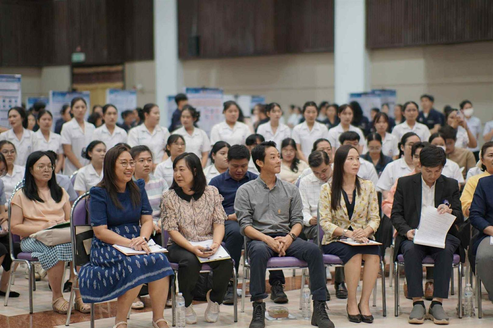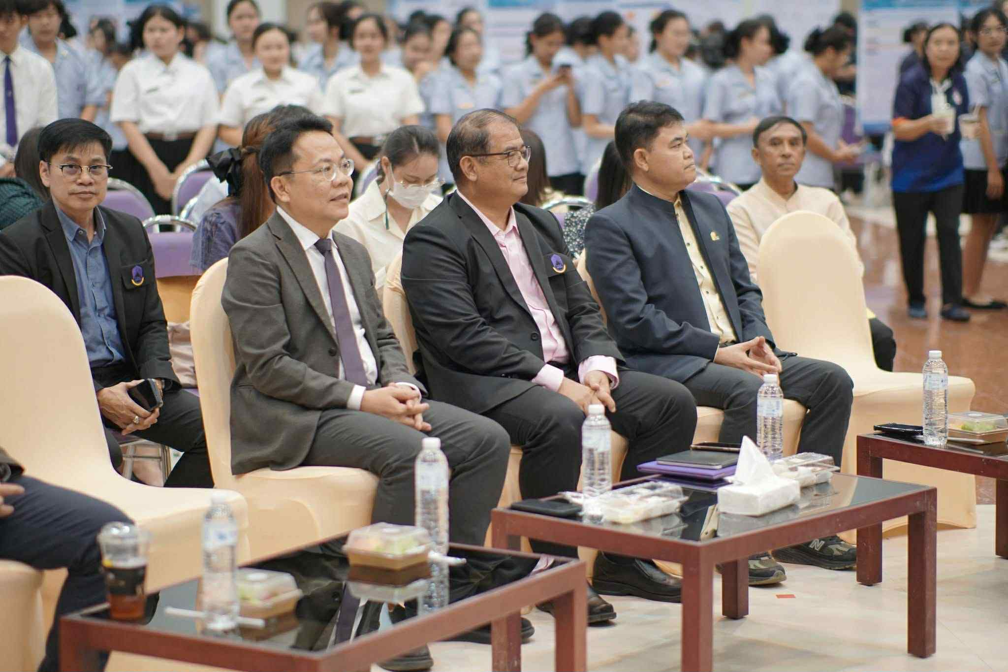 ศาสตราจารย์ ดร.เสมอ ถาน้อย รองอธิการบดีฝ่ายวิจัยและนวัตกรรม กล่าวในพิธีเปิดว่า กิจกรรมครั้งนี้มีความสำคัญอย่างยิ่ง เพราะเป็นพื้นที่เปิดโอกาสให้นิสิตได้พัฒนาสมรรถนะสำคัญที่จำเป็นต่อโลกการทำงานจริง ผ่านการแปลองค์ความรู้จากห้องเรียนไปสู่การลงมือปฏิบัติและสร้างสรรค์ผลงานที่จับต้องได้ ถือเป็นส่วนหนึ่งของการเรียนรู้นอกห้องเรียนที่ช่วยเสริมผลลัพธ์การเรียนรู้ ทั้งทักษะการคิดวิเคราะห์ การสื่อสารอย่างเป็นระบบ และการทำงานร่วมกับผู้อื่น ซึ่งสะท้อนให้เห็นถึงศักยภาพทางวิชาการของนิสิตคณะสาธารณสุขศาสตร์อย่างชัดเจน โดยปีนี้มีผลงานเข้าร่วมนำเสนอถึง 116 ผลงาน จากนิสิตกว่า 676 คน แสดงถึงความตื่นตัวและความมุ่งมั่นของนิสิตที่พร้อมพัฒนาสู่การเป็นบัณฑิตคุณภาพในอนาคต พร้อมทั้งขอบคุณคณะกรรมการผู้ทรงคุณวุฒิที่ให้เกียรติมาร่วมให้ข้อเสนอแนะและคำแนะนำอันเป็นประโยชน์