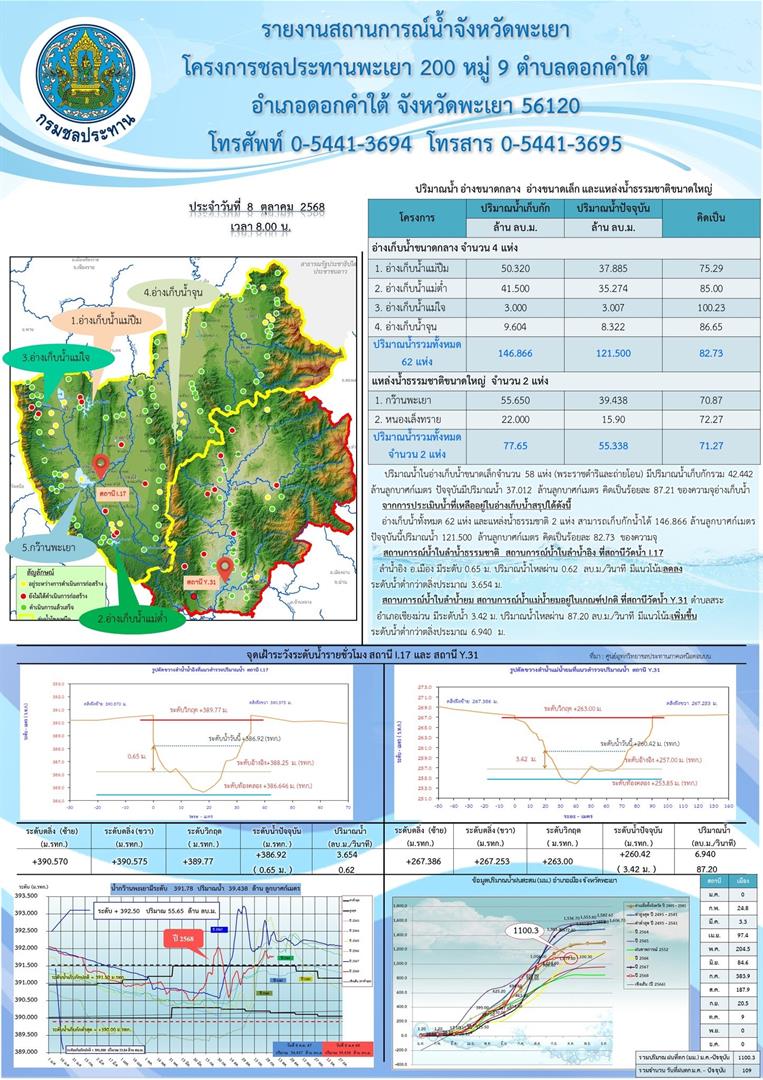 วันพฤหัสบดีที่ 9 ตุลาคม 2568 เวลา 09.30 น. มหาวิทยาลัยพะเยา โดย รองศาสตราจารย์ ดร.สุภกร พงศบางโพธิ์ อธิการบดีมหาวิทยาลัยพะเยา มอบหมายให้ กองอาคารสถานที่ โดย นายชยุต ตนะทิพย์ หัวหน้างานสวนและภูมิทัศน์ เข้าร่วมประชุมคณะทำงานด้านการจัดการน้ำกว๊านพะเยาร่วมกับหน่วยงานราชการและหน่วยงานท้องถิ่นที่เกี่ยวข้อง ณ ห้องประชุมโครงการชลประทานพะเยา อ.ดอกคำใต้ จ.พะเยา โดยรองผู้ว่าราชการจังหวัดพะเยา นายภูธนะ ชมภูมิ่ง รักษาราชการแทนผู้ว่าราชการจังหวัดพะเยา เป็นประธานการประชุมฯ พร้อมด้วยผู้อำนวยการโครงการชลประทานพะเยา หัวหน้าสถานีอุตุนิยมวิทยาพะเยา ผู้แทนนายอำเภอ และผู้แทนจากส่วนราชการ หน่วยงานที่เกี่ยวข้อง ในการหารือแนวทางการบริหารจัดการน้ำในกว๊านพะเยาให้เกิดประสิทธิภาพสูงสุด และเตรียมความพร้อมรองรับสถานการณ์น้ำในช่วงปลายฤดูฝนจนถึงต้นฤดูแล้ง ปี 2568/2569 ร่วมกัน พร้อมทั้งรับฟังรายงานสภาพอากาศจากสถานีอุตุนิยมวิทยาพะเยา และรายงานสถานการณ์น้ำในกว๊านพะเยาจากโครงการชลประทานพะเยา ก่อนร่วมกันพิจารณาแผนการจัดสรรน้ำในช่วงฤดูแล้ง รวมถึงแนวทางการปล่อยน้ำจากกว๊านพะเยาเพื่อใช้ประโยชน์ด้านการเกษตรกรรมอย่างเหมาะสมและสอดคล้องกับปริมาณน้ำที่มีอยู่