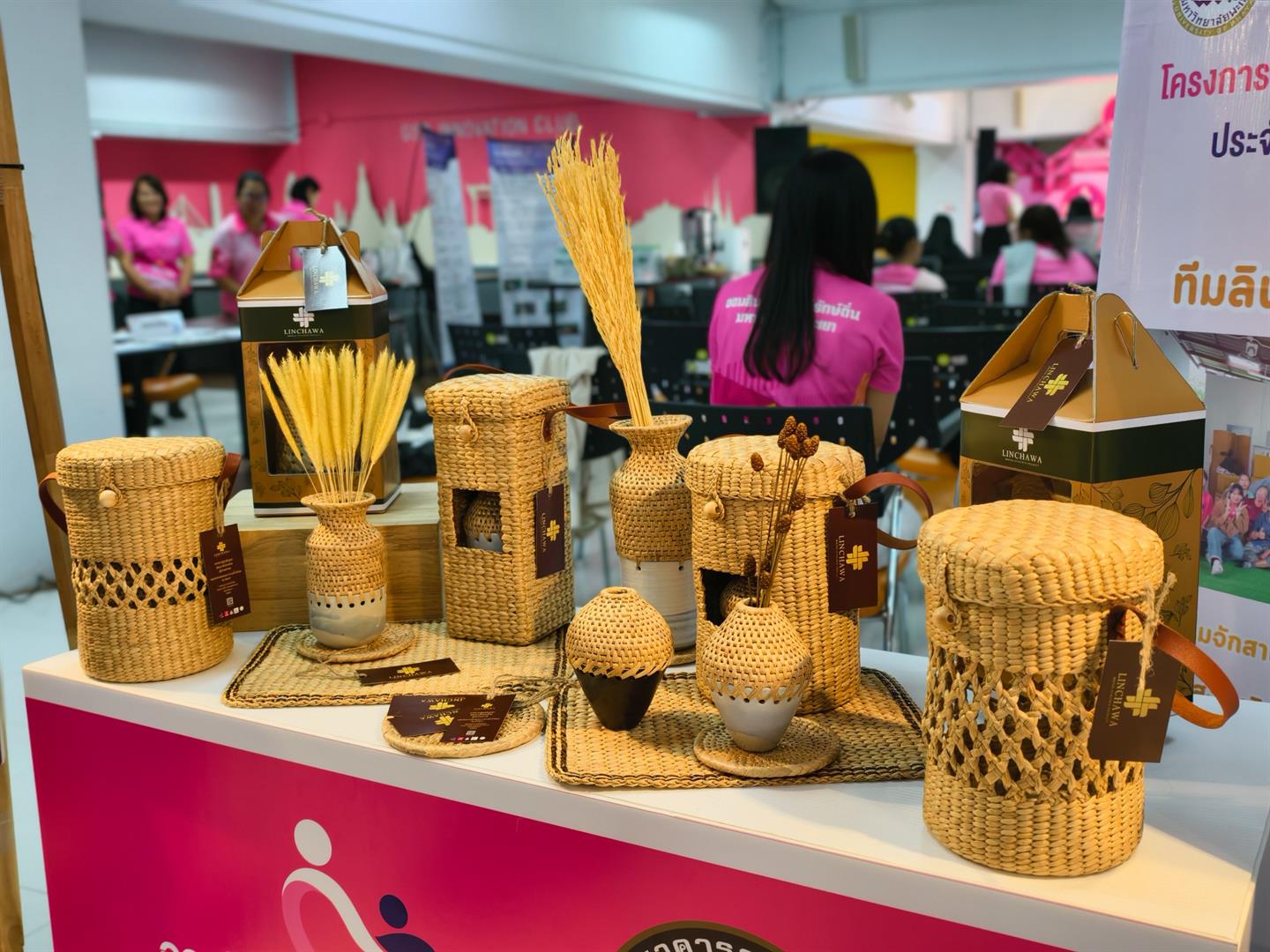 กลุ่มวิสาหกิจจักสานผักตบชวาบ้านต๊ำน้ำล้อมเป็นกลุ่มวิสาหกิจใหม่ หลังจากการพัฒนาตามวัตถุประสงค์ของนิสิตไปแล้วพบว่าทำให้กลุ่มมีรายได้เพิ่มขึ้น 156% โดยมีผลิตภัณฑ์ที่ใช้ผักตบชวาเป็นวัสดุหลัก ได้แก่ แจกันคราฟ กระเป๋า ตะกร้าสาน กระถางต้นไม้