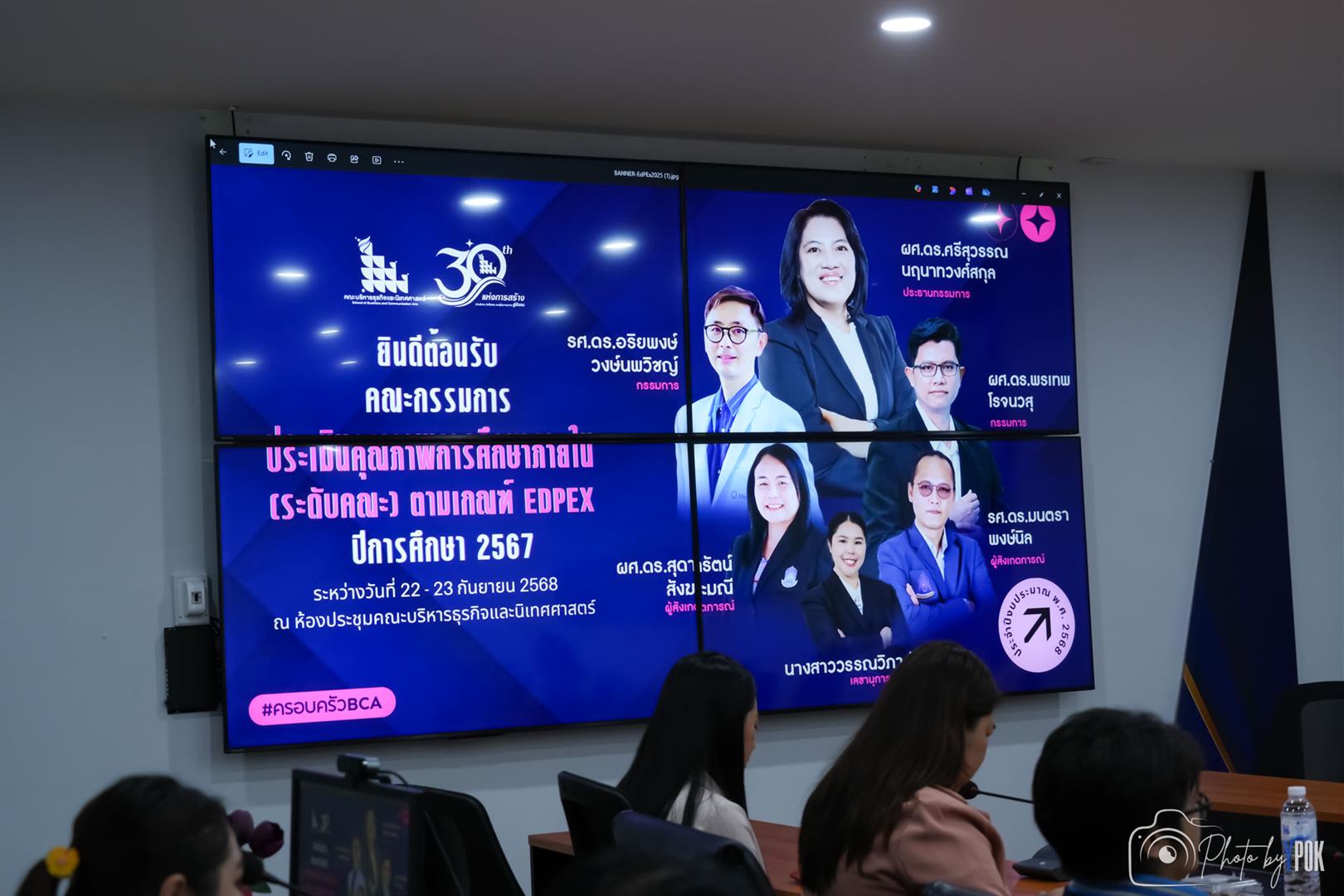เมื่อวันที่ 22 และ 23 กันยายน 2568 ที่ผ่านมา คณะบริหารธุรกิจและนิเทศศาสตร์ มหาวิทยาลัยพะเยา จัดให้มีการประเมินคุณภาพภายใน ระดับคณะ ประจำปีการศึกษา 2567 (ปีงบประมาณ 2568) ณ ห้องประชุมคณะบริหารธุรกิจและนิเทศศาสตร์ เพื่อรับฟังความคิดเห็นและข้อเสนอแนะในการดำเนินงานของคณะ ตามกรอบ EdPEx ที่ประกอบด้วยประเด็นการนำองค์กร กลยุทธ์ ผู้เรียนและผู้รับบริการอื่น การวัด การวิเคราะห์ และการจัดการความรู้ บุคลากร การปฏิบัติการ และผลลัพธ์ โดยได้รับเกียรติจากผู้ทรงคุณวุฒิภายนอก ได้แก่ ผู้ช่วยศาสตราจารย์ ดร.ศรีสุวรรณ นฤนาทวงศ์สกุล รองคณบดี คณะอุตสาหกรรมเกษตร มหาวิทยาลัยเชียงใหม่, รองศาสตราจารย์ ดร.อริยพงษ์ วงษ์นพวิชญ์ อาจารย์ภาควิชาชีวเคมี คณะแพทยศาสตร์ มหาวิทยาลัยเชียงใหม่ นอกจากนี้แล้วยังได้รับเกียรติจากผู้ตรวจประเมินภายในสถาบัน ได้แก่ ผู้ช่วยศาสตราจารย์ ดร.พรเทพ โรจนวสุ คณบดีคณะเทคโนโลยีสารสนเทศและการสื่อสาร และได้รับเกียรติจาก รองศาสตราจารย์ ดร.มนตรา พงษ์นิล คณบดีคณะรัฐศาสตร์และสังคมศาสตร์และ ผู้ช่วยศาสตราจารย์ ดร.สุดารัตน์ สังฆะมณี รองคณบดีฝ่ายบริหารและพัฒนาคุณภาพองค์กร คณะสหเวชศาสตร์ เป็นผู้สังเกตการณ์ ร่วมให้ข้อเสนอแนะด้วย