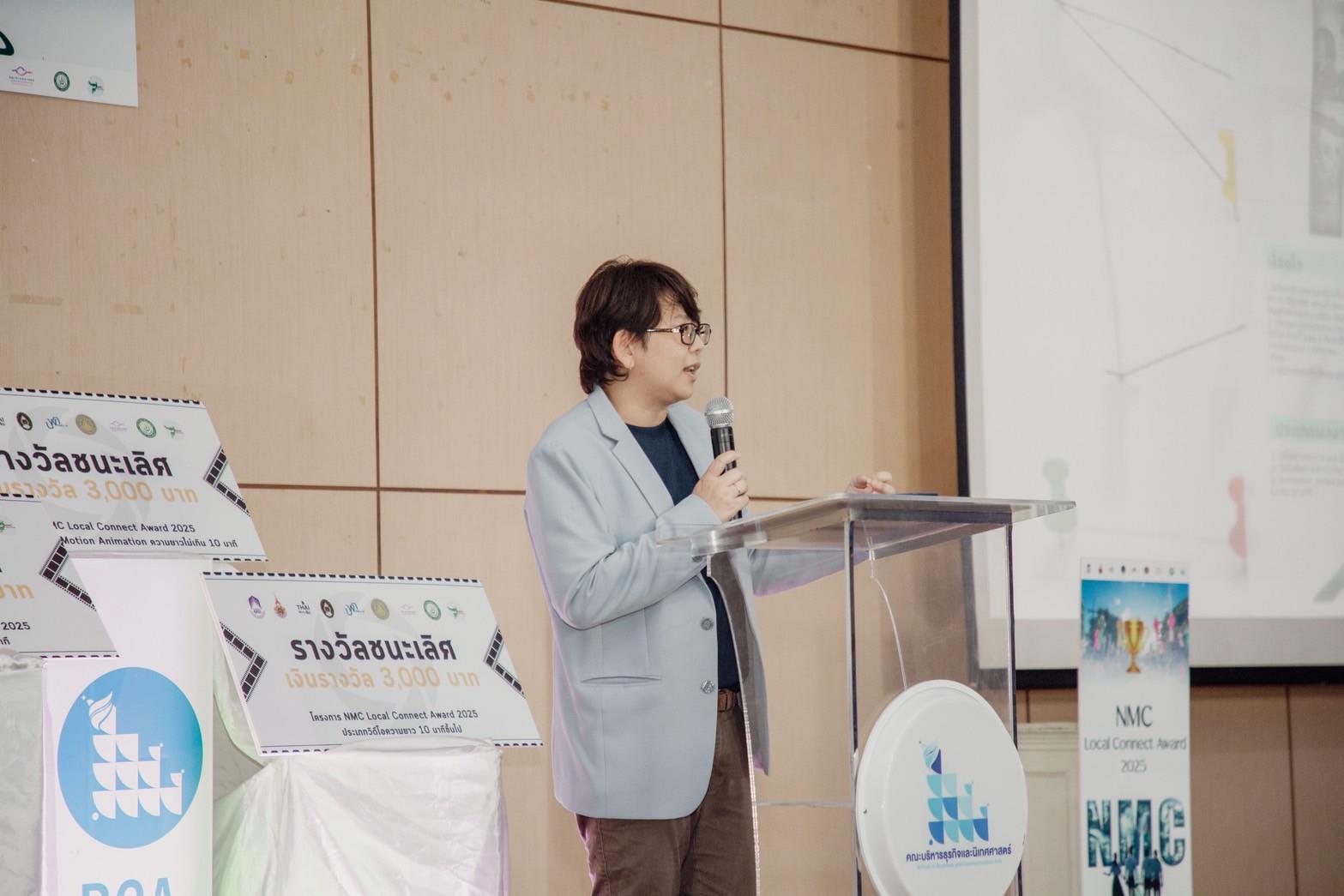 เมื่อวันที่ 24 กันยายน ที่ผ่านมา สาขาวิชาการสื่อสารสื่อใหม่ ดำเนินการจัดโครงการประกวดสื่อเรื่องเล่าท้องถิ่นเพื่อขับเคลื่อนเศรษฐกิจเชิงสร้างสรรค์ “NMC Local Connect NMC Awards” ณ ห้องภูกามยาว 1 (PKY1) อาคารเรียนรวมภูกามยาว มหาวิทยาลัยพะเยา เพื่อเป็นการกระตุ้นให้นิสิตได้สร้างสรรค์สื่อเกี่ยวกับทุนวัฒนธรรมของชุมชนท้องถิ่นในรูปแบบที่สร้างสรรค์และเพื่อเป็นการพัฒนาการทำงานร่วมระหว่างสถาบันการศึกษาและชุมชนท้องถิ่น โดยกำหนดให้เป็นกิจกรรมที่บูรณาการร่วมกับการเรียนการสอนในรายวิชา การบริหารองค์กรสื่อท้องถิ่น และรายวิชาการผลิตเนื้อหาสำหรับสื่อออนไลน์ที่เปิดสอนในภาคการศึกษาต้น 2568 ของสาขาการสื่อสารสื่อใหม่โดยผู้ช่วยศาสตราจารย์ ดร. ณปภา สุวรรณรงค์ กล่าวแนะนำถึงที่มาของกิจกรรม และสรุปผลงานที่ส่งเข้าประกวด และได้รับเกียรติจาก ดร.พัจน์พิตตา ศรีสมพงษ์ รองคณบดีฝ่ายวิชาการ กล่าวเปิดงานในครั้งนี้