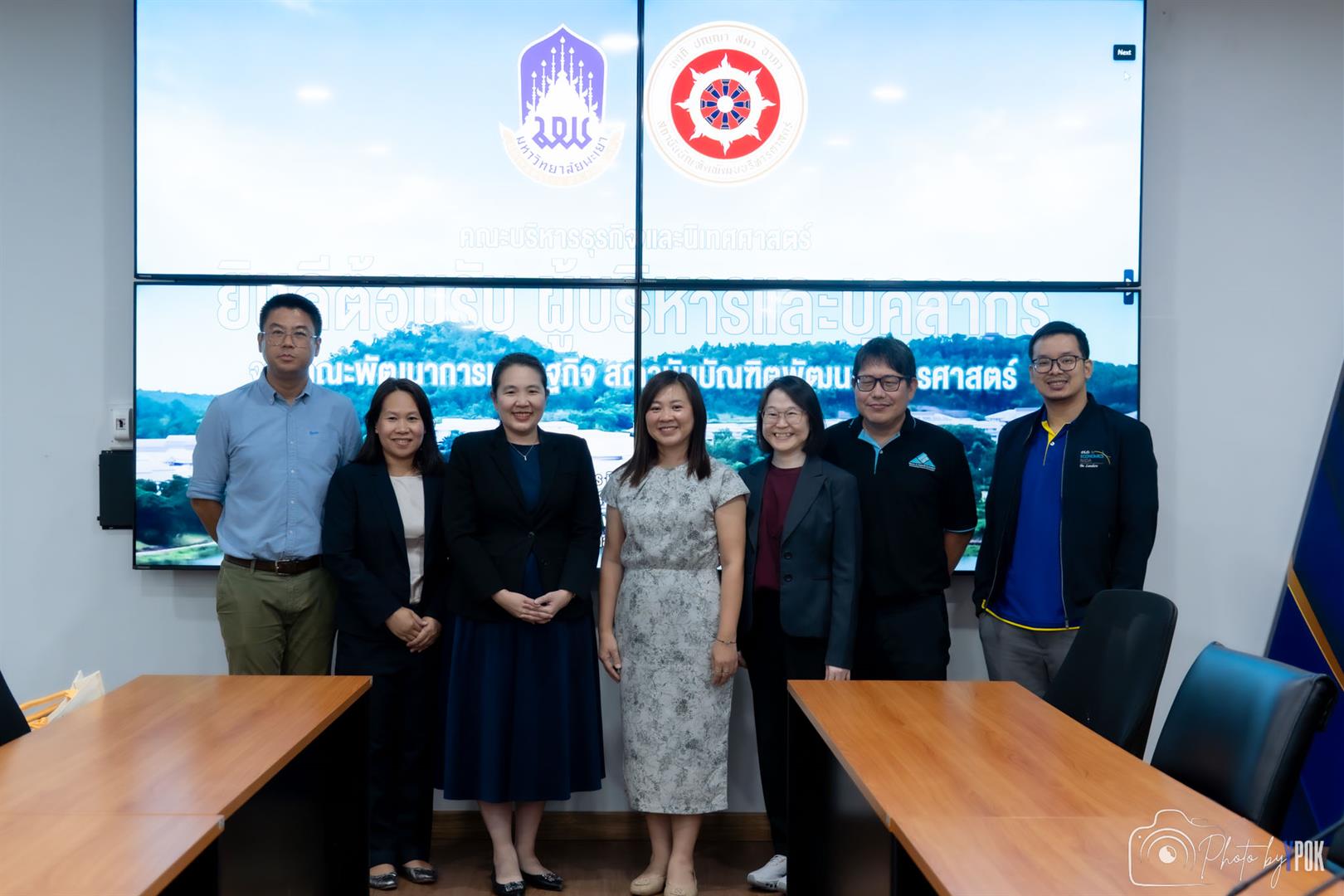 คณะบริหารธุรกิจและนิเทศศาสตร์ นำโดย ผู้ช่วยศาสตราจารย์ ดร.ประกอบศิริ ภักดีพินิจ คณบดีคณะบริหารธุรกิจและนิเทศศาสตร์ พร้อมด้วยผู้บริหารคณะ พร้อมด้วย ดร.สาธิต เชื้ออยู่นานรองคณบดีฝ่ายบริหาร, อาจารย์กมลพงศ์ รัตนสงวนวงศ์ รองคณบดีฝ่ายพัฒนาคุณภาพนิสิต, ผู้ช่วยศาสตราจารย์ ดร.อริยา เผ่าเครื่อง ประธานหลักสูตรเศรษฐศาสตรบัณฑิต, ดร.เรืองรอง สุวรรณ์การ อาจารย์ประจำหลักสูตรเศรษฐศาสตรบัณฑิต, ดร.สมคิด ยาเคน อาจารย์ประจำหลักสูตรบริหารธุรกิจบัณฑิต สาขาวิชาการเงินและการลงทุน, นางสาววงเดือน ศักดิ์บุญเรือง รักษาการแทนหัวหน้าสำนักงาน และนางสาวธิภาภรณ์ เงินเย็น หัวหน้างานวิชาการ ให้การต้อนรับผู้บริหารและบุคลากรคณะพัฒนาการเศรษฐกิจ สถาบันบัณฑิตพัฒนบริหารศาสตร์ นำโดย รองศาสตราจารย์ ดร.ปริยดา สุขเจริญสิน คณบดีคณะพัฒนาการเศรษฐกิจ สถาบันบัณฑิตพัฒนบริหารศาสตร์ พร้อมด้วย ผู้ช่วยศาสตราจารย์ ดร.ทัศนีย์ สติมานนท์ รองคณบดีฝ่ายวิชาการ, ผู้ช่วยศาสตราจารย์ ดร.นิรมล อริยอาภากมล รองคณบดีฝ่ายบริหาร, รองศาสตราจารย์ ดร.ยุทธนา เศรษฐปราโมทย์ ผู้อำนวยการหลักสูตรเศรษฐศาสตร์การเงิน, ผู้ช่วยศาสตราจารย์ ดร.อัธกฤตย์ เทพมงคล ผู้อำนวยการหลักสูตรเศรษฐศาสตร์ธุรกิจ, นางสาวจิตติมา เดียงไธสง นักวิชาการศึกษา ระดับชานาญการ และนางสาวณัฐชานันท์ รัตนตั้งตระกูล นักวิชาการศึกษาระดับปฏิบัติการ พร้อมทั้งหารือความร่วมมือด้านการพัฒนาบุคลากร นิสิตและนักศึกษา ด้านวิชาการ การวิจัย และบริการวิชาการ ภายใต้บันทึกข้อตกลงความร่วมมือทางวิชาการ เรื่องการพัฒนาบุคลากร นิสิต และนักศึกษา ด้านวิชาการ การวิจัย และบริการวิชาการระหว่าง สถาบันบัณฑิตพัฒนบริหารศาสตร์ โดยคณะพัฒนาการเศรษฐกิจ กับ มหาวิทยาลัยพะเยา ณ ห้องประชุมคณะบริหารธุรกิจและนิเทศศาสตร์ (T206) มหาวิทยาลัยพะเยา