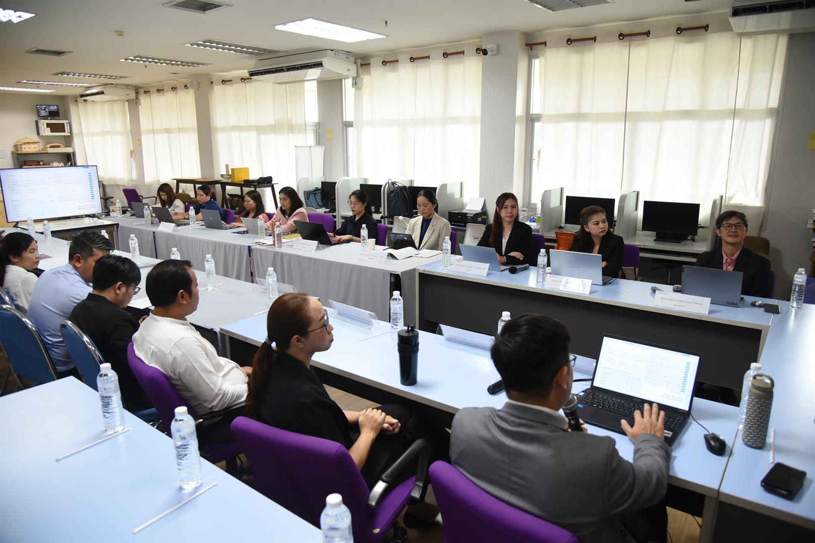 ในการนี้ คณะผู้บริหาร คณาจารย์ และบุคลากรของคณะฯ ได้ร่วมกันนำเสนอข้อมูลการดำเนินงาน ผลลัพธ์ที่สำคัญ รวมถึงแผนการพัฒนาองค์กรในมิติด้านต่าง ๆ เพื่อให้สอดคล้องกับพันธกิจและยุทธศาสตร์ของมหาวิทยาลัยพะเยา โดยการตรวจประเมินดังกล่าวถือเป็นกลไกสำคัญในการยกระดับคุณภาพการบริหารจัดการของคณะสถาปัตยกรรมศาสตร์และศิลปกรรมศาสตร์ให้มีความเป็นเลิศตามมาตรฐานสากล