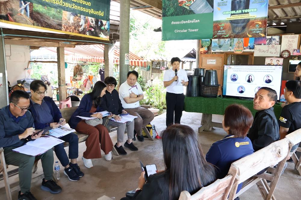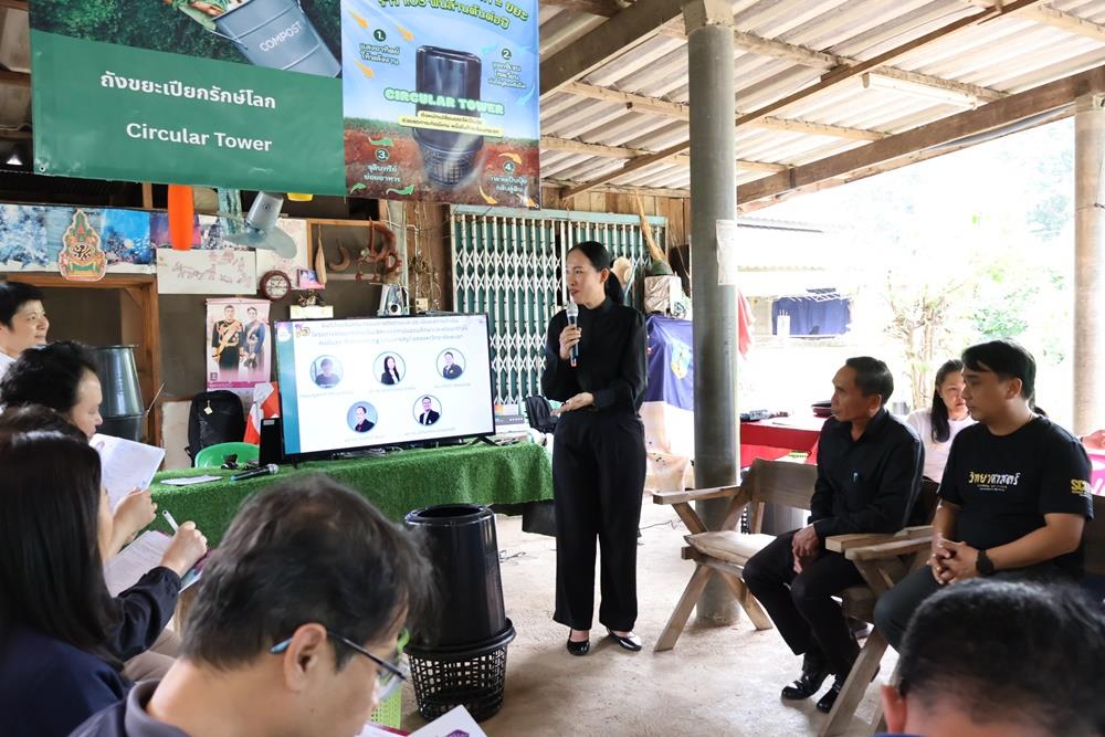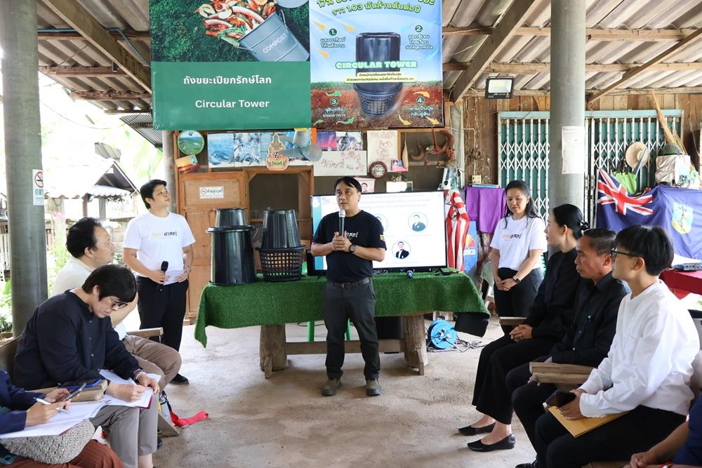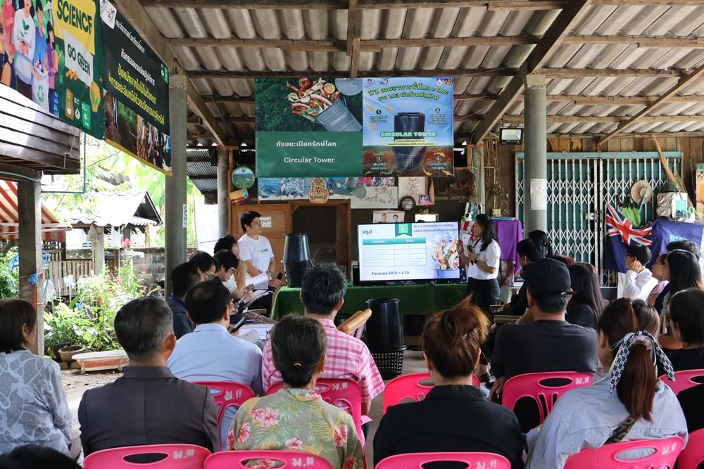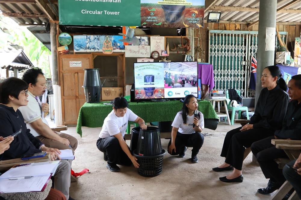 ผู้ช่วยศาสตราจารย์ ดร.เริงฤทัย ศิริรักษ์ หัวหน้าโครงการ และ ดร.พัชรินทร์ ตั้งชัยสุริยา นักวิจัย ได้นำเสนอผลลัพธ์และความก้าวหน้าของโครงการในเชิงลึก ขณะที่ ดร.นิยม โฮ่งสิทธิ์ ได้สาธิตและบรรยายการทำ "ถังขยะเปียกรักษ์โลก" หรือ Circular Tower ซึ่งเป็นนวัตกรรมง่าย ๆ ที่ช่วยลดการปล่อยก๊าซเรือนกระจกได้อย่างเป็นรูปธรรม