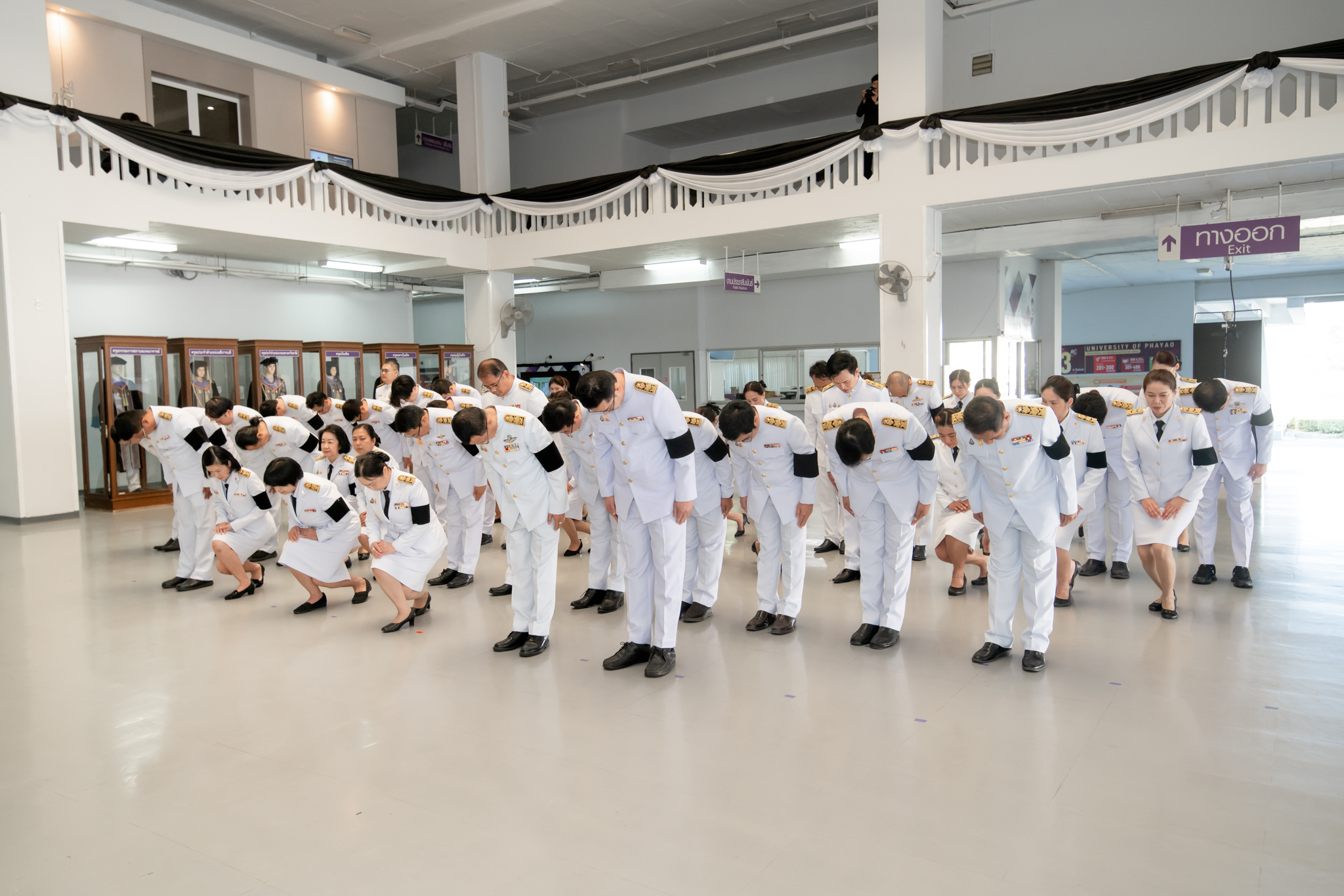 ในโอกาสนี้ อธิการบดีพร้อมด้วยคณะผู้บริหารและบุคลากร ร่วมถวายความอาลัยแด่ สมเด็จพระนางเจ้าสิริกิติ์ พระบรมราชินีนาถ พระบรมราชชนนีพันปีหลวง โดยยืนสงบนิ่งเป็นเวลา 1 นาที เพื่อน้อมรำลึกในพระมหากรุณาธิคุณอันหาที่สุดมิได้ จากนั้น อธิการบดีพร้อมด้วยคณะผู้บริหารและบุคลากร ร่วมพิธีลงนามถวายความอาลัยในสมุดลงนาม