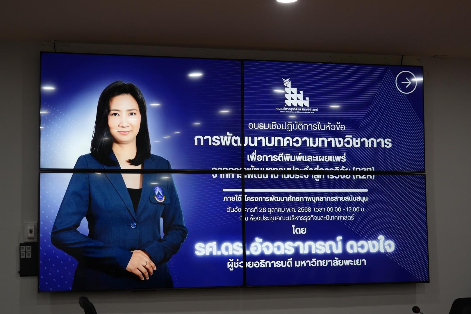 เมื่อวันที่ 28 ตุลาคม 2568 สำนักงานคณะบริหารธุรกิจและนิเทศศาสตร์ มหาวิทยาลัยพะเยา ได้จัดโครงการอบรมเชิงปฏิบัติการในหัวข้อ “การพัฒนาบทความทางวิชาการจากการพัฒนางานประจำสู่การวิจัย (Routine to Research: R2R) เพื่อการตีพิมพ์และเผยแพร่” ภายใต้โครงการพัฒนาศักยภาพบุคลากรสายสนับสนุน คณะบริหารธุรกิจและนิเทศศาสตร์