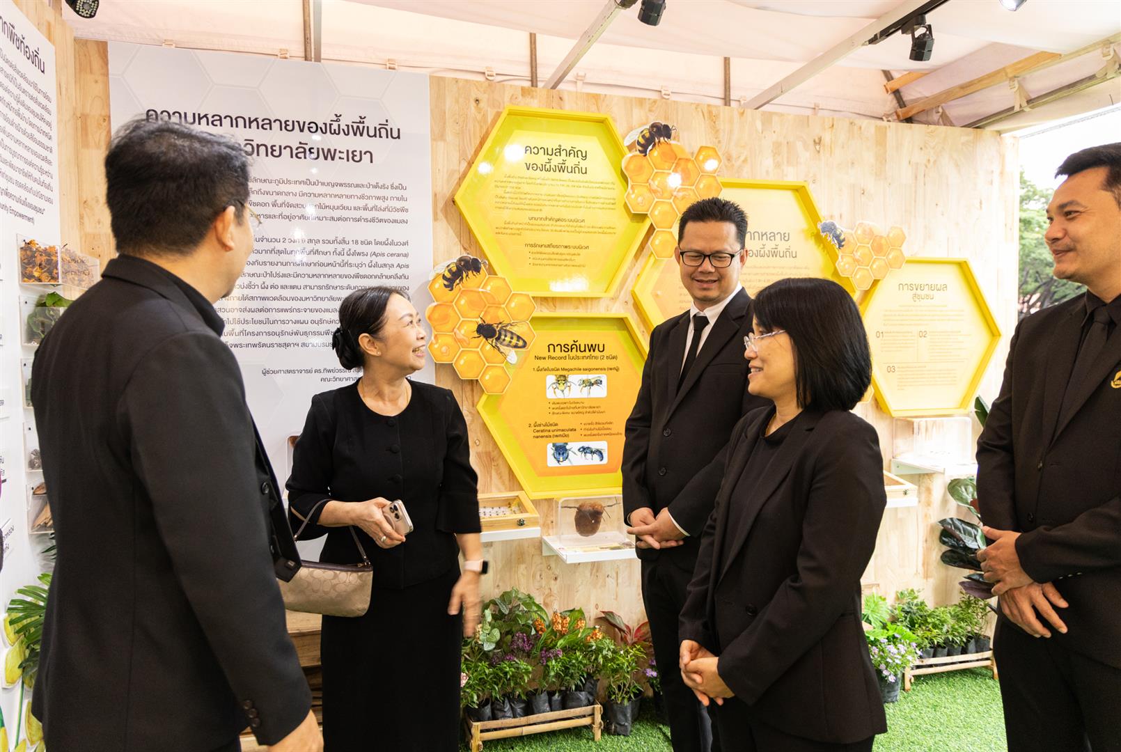 ในพิธีเปิดงาน รองศาสตราจารย์ ดร.สุภกร พงศบางโพธิ์ อธิการบดีมหาวิทยาลัยพะเยา ได้ร่วมเข้าเฝ้าทูลละอองพระบาทรับเสด็จ สมเด็จพระกนิษฐาธิราชเจ้า กรมสมเด็จพระเทพรัตนราชสุดาฯ สยามบรมราชกุมารี และมีศาสตราจารย์ ดร.เสมอ ถาน้อย รองอธิการบดีฝ่ายวิจัยและนวัตกรรม ร่วมทูลเกล้าฯ ถวาย ผ้าทอมือจากฝ้ายย้อมสีธรรมชาติ ลายดอกคำมอกหลวง ซึ่งเป็นผลงานวิจัยการย้อมสีธรรมชาติ ของคณะวิทยาศาสตร์ในภาคนิทรรศการ