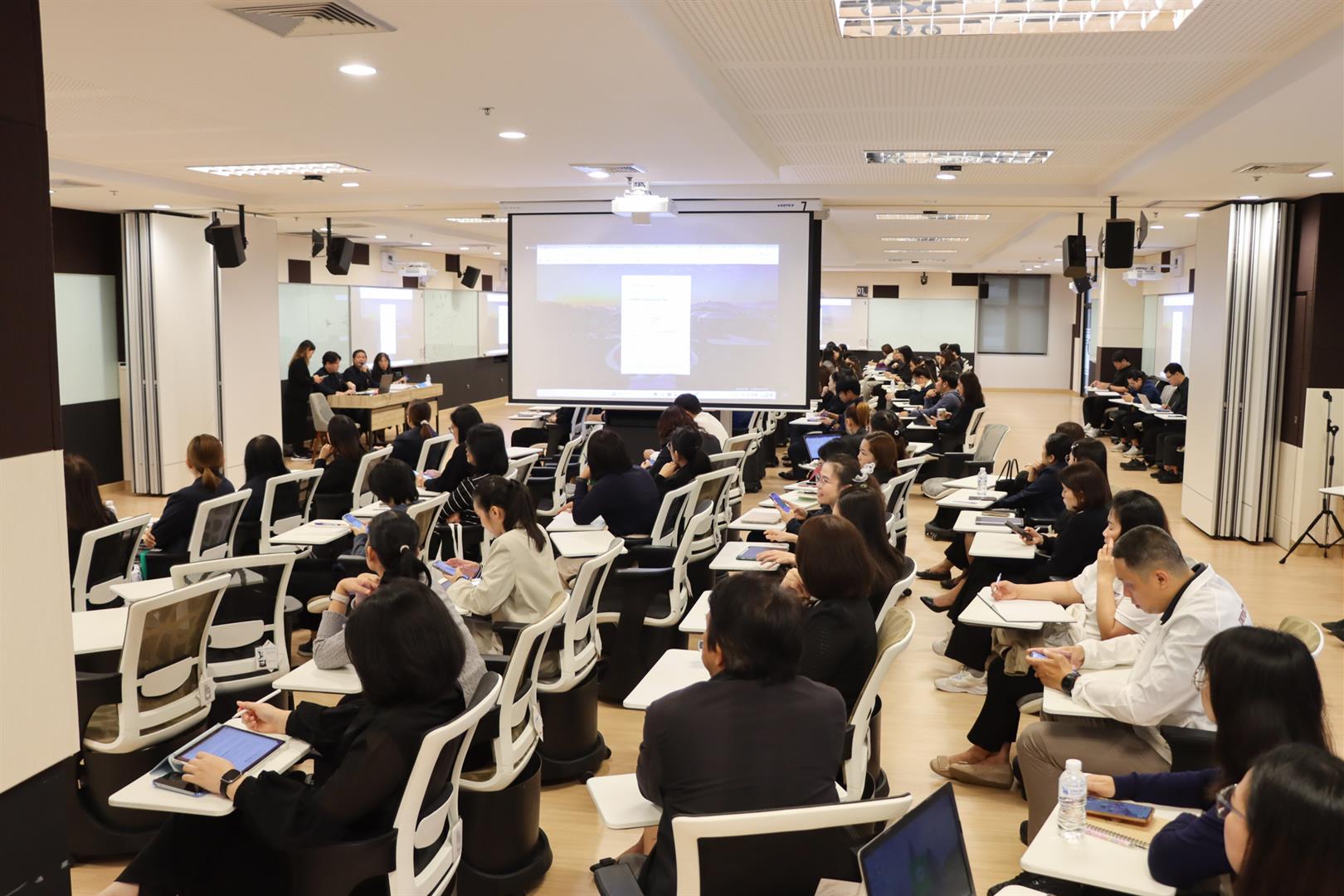 โครงการจัดการความรู้ (Knowledge Management) ในครั้งนี้มีผู้เข้าร่วมโครงการจำนวนทั้งสิ้น 140 คน ประกอบด้วยรองคณบดี ผู้อำนวยการ หัวหน้าสำนักงานและผู้ปฏิบัติงานด้านพัสดุ จัดขึ้น ณ ห้อง active learning Classroom อาคาร เรียนรวมใหม่ (CE) มหาวิทยาลัยพะเยา