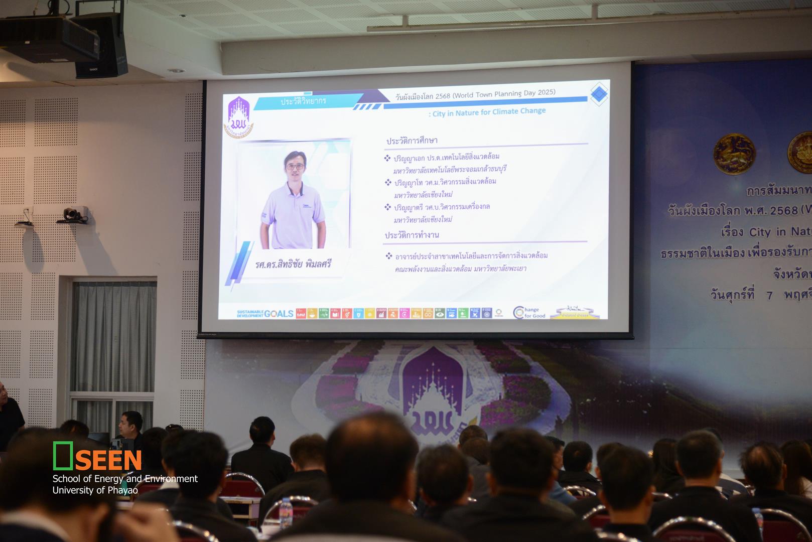 วันที่ 7 พ.ย. 68 รศ.ดร.สิทธิชัย พิมลศรี นักวิจัย ผู้เชี่ยวชาญด้านการเปลี่ยนแปลงสภาพภูมิอากาศ คณะพลังงานและสิ่งแวดล้อม ม.พะเยา ได้รับเกียรติเป็นวิทยากรบรรยายในหัวข้อ “สถานการณ์และผลกระทบของ Climate Change ต่อเมือง” จัดขึ้นโดย สำนักงานโยธาธิการและผังเมืองจังหวัดพะเยา ในการสัมมนาทางวิชาการเนื่องในวันผังเมืองโลก ณ ห้องประชุมเมืองพะเยา
