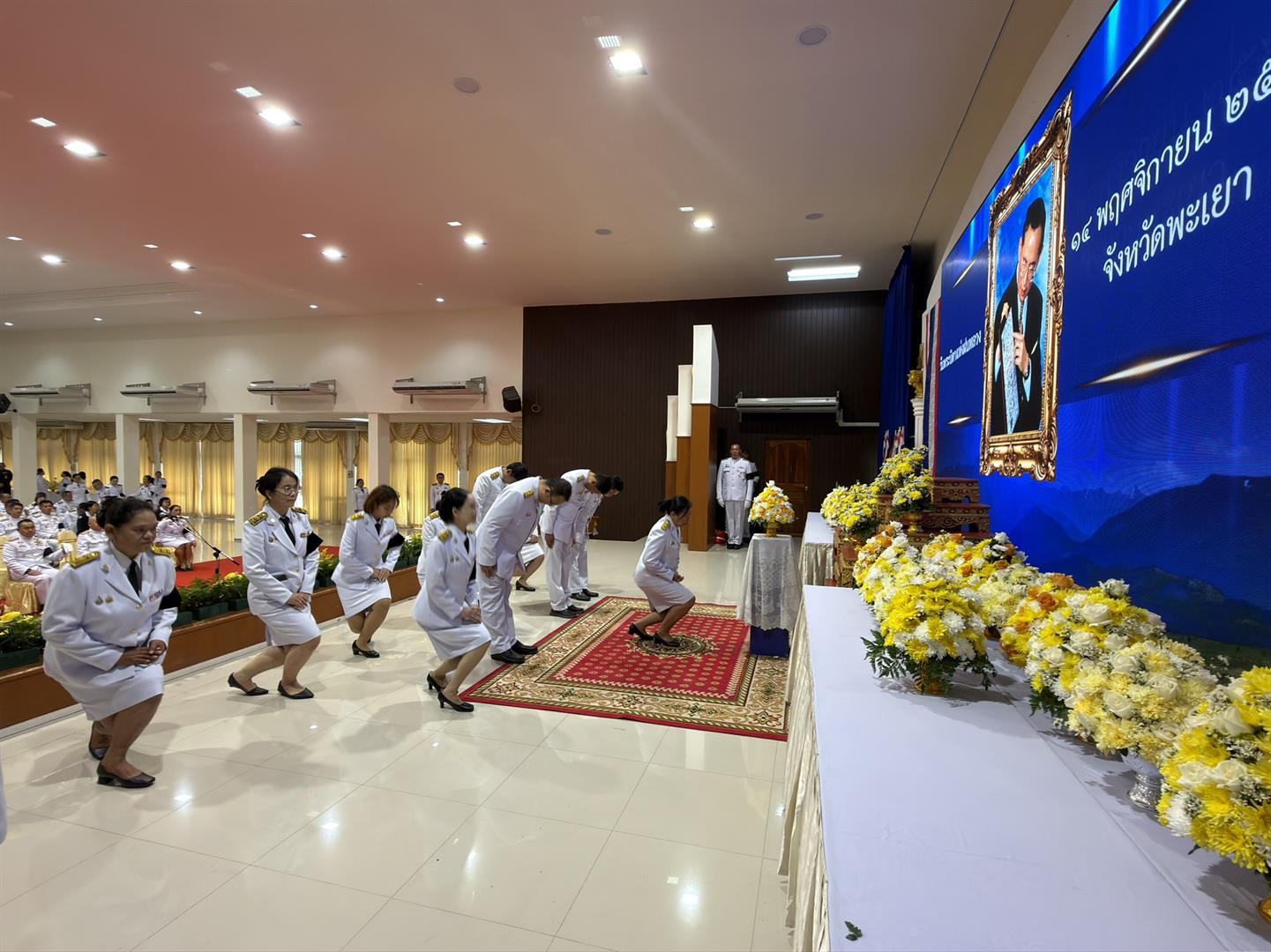 พิธีดังกล่าวมี นายภูธนะ ชมภูมิ่ง รองผู้ว่าราชการจังหวัดพะเยา รักษาราชการแทนผู้ว่าราชการจังหวัดพะเยา เป็นประธานในพิธี โดยได้ประกอบพิธีถวายความอาลัยแด่สมเด็จพระนางเจ้าสิริกิติ์ พระบรมราชินีนาถ พระบรมราชชนนีพันปีหลวง ด้วยการยืนสงบนิ่งเป็นเวลา 93 วินาที จากนั้นประธานในพิธีพร้อมข้าราชการพลเรือน ตุลาการ ทหาร ตำรวจ และผู้เข้าร่วมงาน ร่วมวางพานพุ่มถวายราชสักการะแด่พระบิดาแห่งฝนหลวงอย่างพร้อมเพรียง