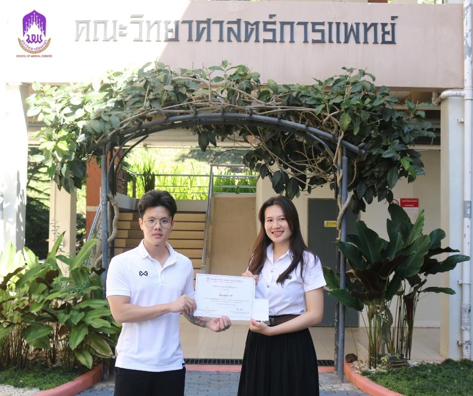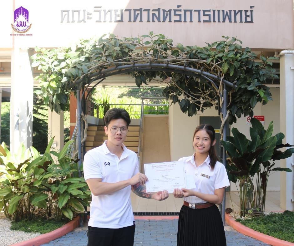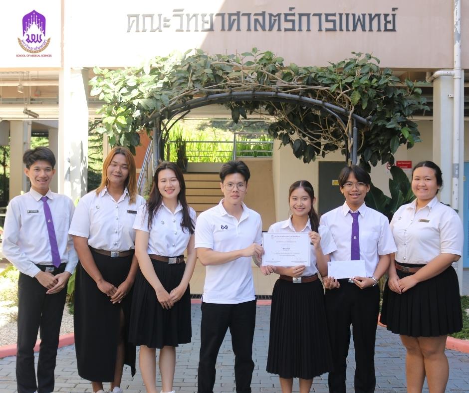 ในโอกาสนี้ได้รับเกียรติจาก ผู้ช่วยศาสตราจารย์ ดร.ธีรภัทร ศรีรัตนโชติ รองคณบดีฝ่ายคุณภาพนิสิตและสื่อสารองค์กรเป็นผู้มอบรางวัลให้แก่ผู้ได้รับรางวัลในแต่ละประเภท พร้อมร่วมแสดงความยินดีกับทุกผลงานที่โดดเด่นและน่าประทับใจ คณะวิทยาศาสตร์การแพทย์ขอขอบคุณผู้เข้าร่วมทุกท่านที่ร่วมกันสร้างสีสันให้กับกิจกรรมในครั้งนี้ และขอแสดงความยินดีกับผู้ได้รับรางวัลทุกท่าน