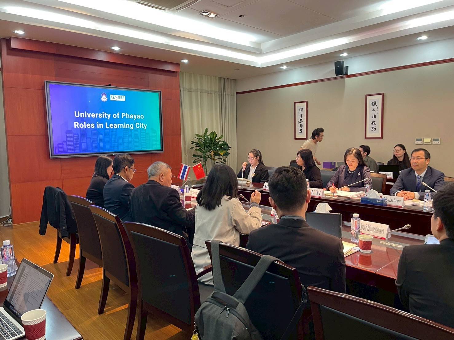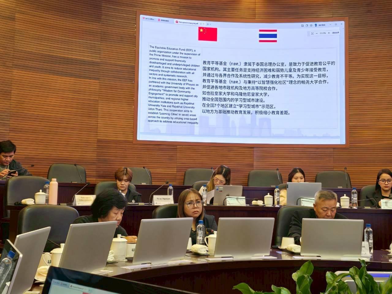 รองศาสตราจารย์ ดร.สุภกร พงศบางโพธิ์ อธิการบดีมหาวิทยาลัยพะเยา มอบหมายให้ รองศาสตราจารย์ ดร.ผณินทรา ธีรานนท์ ผู้ช่วยอธิการบดี เข้าร่วมนำเสนอบทบาทของมหาวิทยาลัยพะเยาในการขับเคลื่อนการพัฒนาเมืองแห่งการเรียนรู้ในประเทศไทย รวมถึงประสบการณ์ทำงานร่วมกับเทศบาลและชุมชนในจังหวัดพะเยา นอกจากนี้ยังได้เข้าร่วมประชุมเชิงลึกด้านความร่วมมือ การวิจัย และการจัด International Forum ร่วมกับภาคีจากจีน ในวันที่ 25 พฤศจิกายน 2568