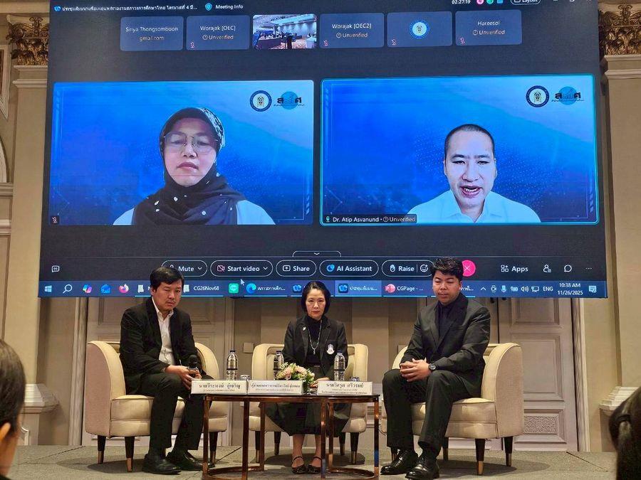 วันพุธที่ 26 พฤศจิกายน พ.ศ. 2568 วิทยาเขตเชียงราย โดยผู้ช่วยศาสตราจารย์ ดร.ธิดาวัลย์ อุ่นกอง ผู้อำนวยการ เข้าร่วมการประชุมสัมมนาเพื่อเผยแพร่รายงานสภาวะการศึกษาไทยไตรมาสที่ 4 พ.ศ. 2568 Reimangining Thai Education: Global Foresight and National Readiness พร้อมกันนี้ ได้รับเกียรติเป็นผู้ร่วมเสวนา เรื่อง Comparative Education for Policy Transformation: บทเรียนโลกเพื่อการยกระดับการศึกษาไทย จัดขึ้นโดยสำนักงานเลขาธิการสภาการศึกษา โดยมีผู้รับฟังทั้งรูปแบบ Onsite และ Online ณ ห้องประชุมแมนดาริน บี โรงแรมแมนดารินแมนเนจ บาย เซ็นเตอร์พ้อยท์ สามย่าน กรุงเทพฯ