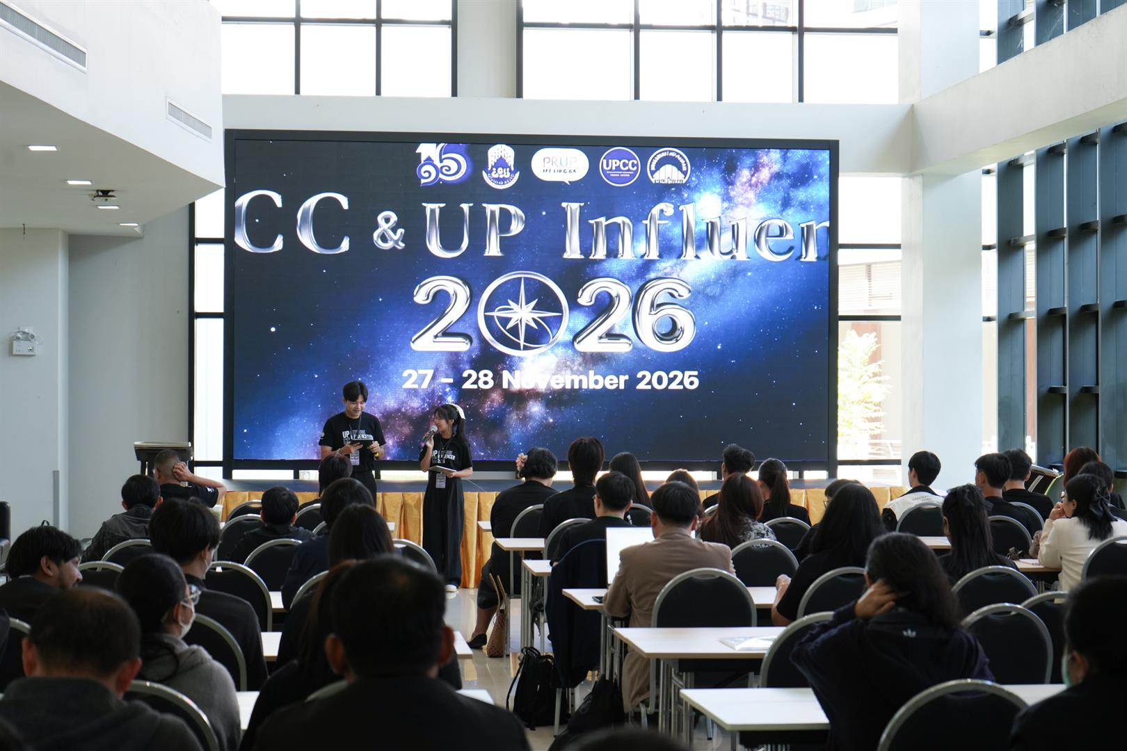 กองกลาง งานสื่อสารองค์กร มหาวิทยาลัยพะเยา จัดโครงการ “เฉลิมฉลองก้าวสู่ปีที่ 16 มหาวิทยาลัยพะเยา UPCC & UP Influencer” ระหว่างวันที่ 27–28 พฤศจิกายน 2567 โดยมีรองศาสตราจารย์ ดร.ดิเรก ธีระภูธร รองอธิการบดีฝ่ายสื่อสารองค์กร เป็นประธานเปิดกิจกรรม พร้อมต้อนรับผู้เข้าร่วมกว่า 90 คน ประกอบด้วยเครือข่ายนักประชาสัมพันธ์จากส่วนงาน/หน่วยงานต่าง ๆ ของมหาวิทยาลัย และกลุ่ม UP Influencer ที่ผ่านการสมัครเข้าร่วมกิจกรรม เพื่อร่วมฝึกอบรมพัฒนาศักยภาพด้านการสื่อสารองค์กรในยุคดิจิทัล โครงการ ฯ จัดขึ้น ณ ลานกิจกรรม อาคารเฉลิมพระเกียรติ โรงพยาบาลมหาวิทยาลัยพะเยา