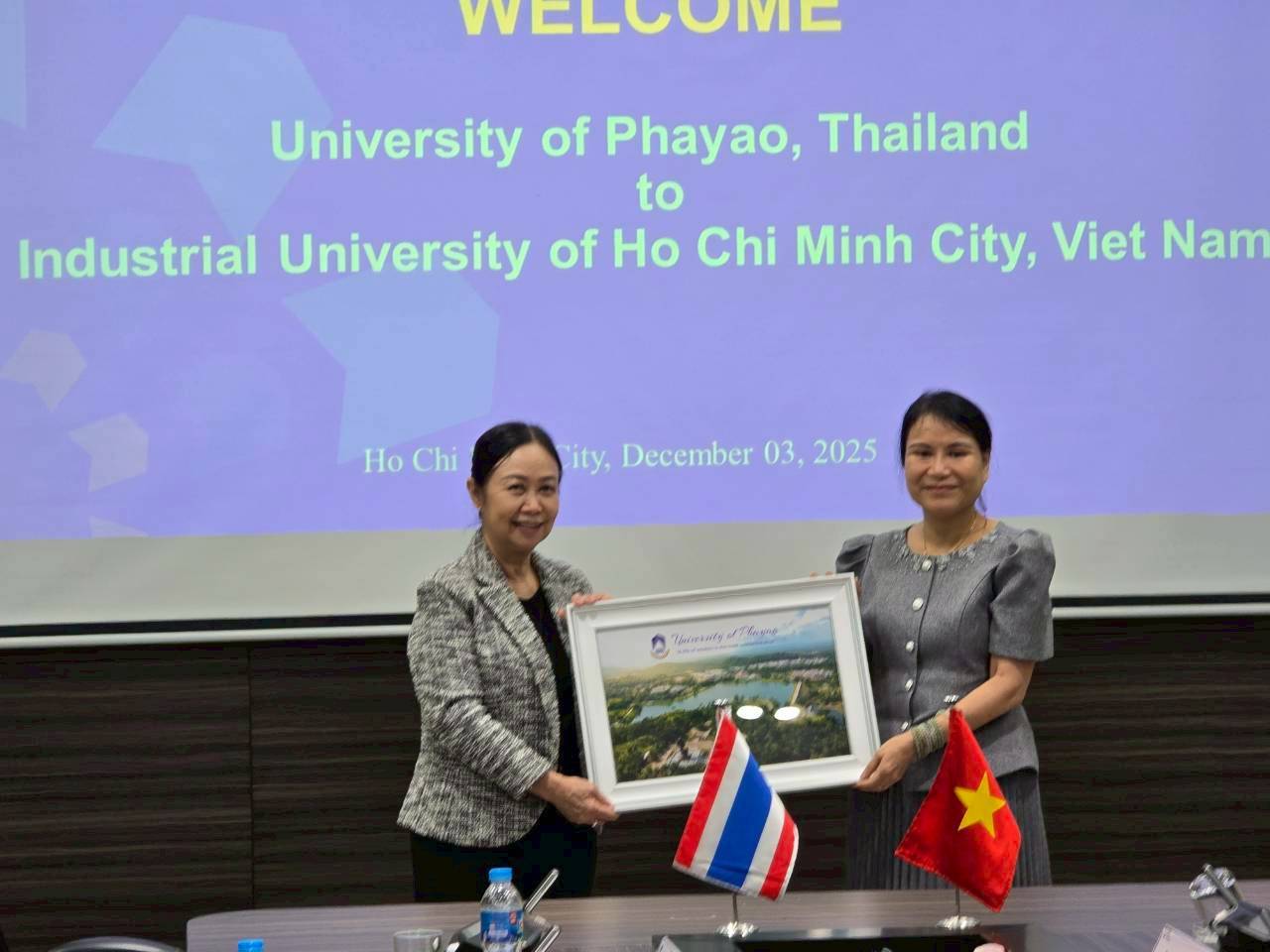 คณะผู้บริหารมหาวิทยาลัยพะเยา ยังเข้าเจรจากับผู้บริหารของ Industrial University of Ho Chi Minh City (IUH) โดยผู้บริหาร IUH อาทิ Assoc.Prof.Dr. Dam Sao Mai รองอธิการบดี และผู้บริหารอีก 3 คณะ เพื่อมุ่งเน้นสร้างความร่วมมือด้านหลักสูตร และการวิจัย