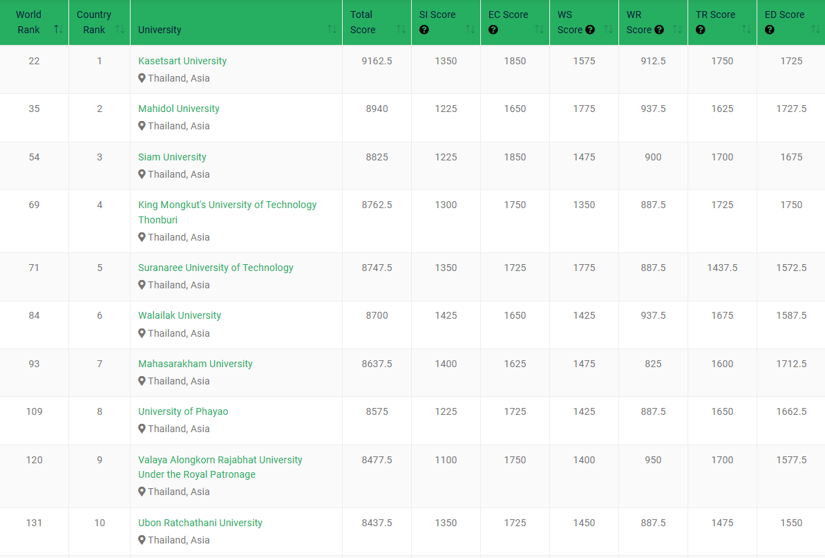 มหาวิทยาลัยพะเยา ได้อันดับที่ 8 ของไทย จาก 61 มหาวิทยาลัยในประเทศไทย และเป็นอันดับที่ 109 ของโลก จากมหาวิทยาลัย 1,745 แห่ง ทั่วโลก โดยได้คะแนน 8,575 คะแนน เพิ่มขึ้น 125 คะแนน จากปีที่ผ่านมาที่ 8,450 คะแนน การจัดอันดับมหาวิทยาลัยสีเขียวโลก UI Green Metric World University Ranking เป็นการจัดอันดับมหาวิทยาลัยที่ให้ความสำคัญกับการพัฒนาอย่างยั่งยืน โดยพิจารณาจาก 6 ด้านสำคัญ ผลการจัดอันดับ UI Green Metric World University Ranking 2025 มหาวิทยาลัยพะเยา ได้รับคะแนนแบ่งตามเกณฑ์ตัวชี้วัด ทั้ง 6 ด้าน ได้ดังนี้