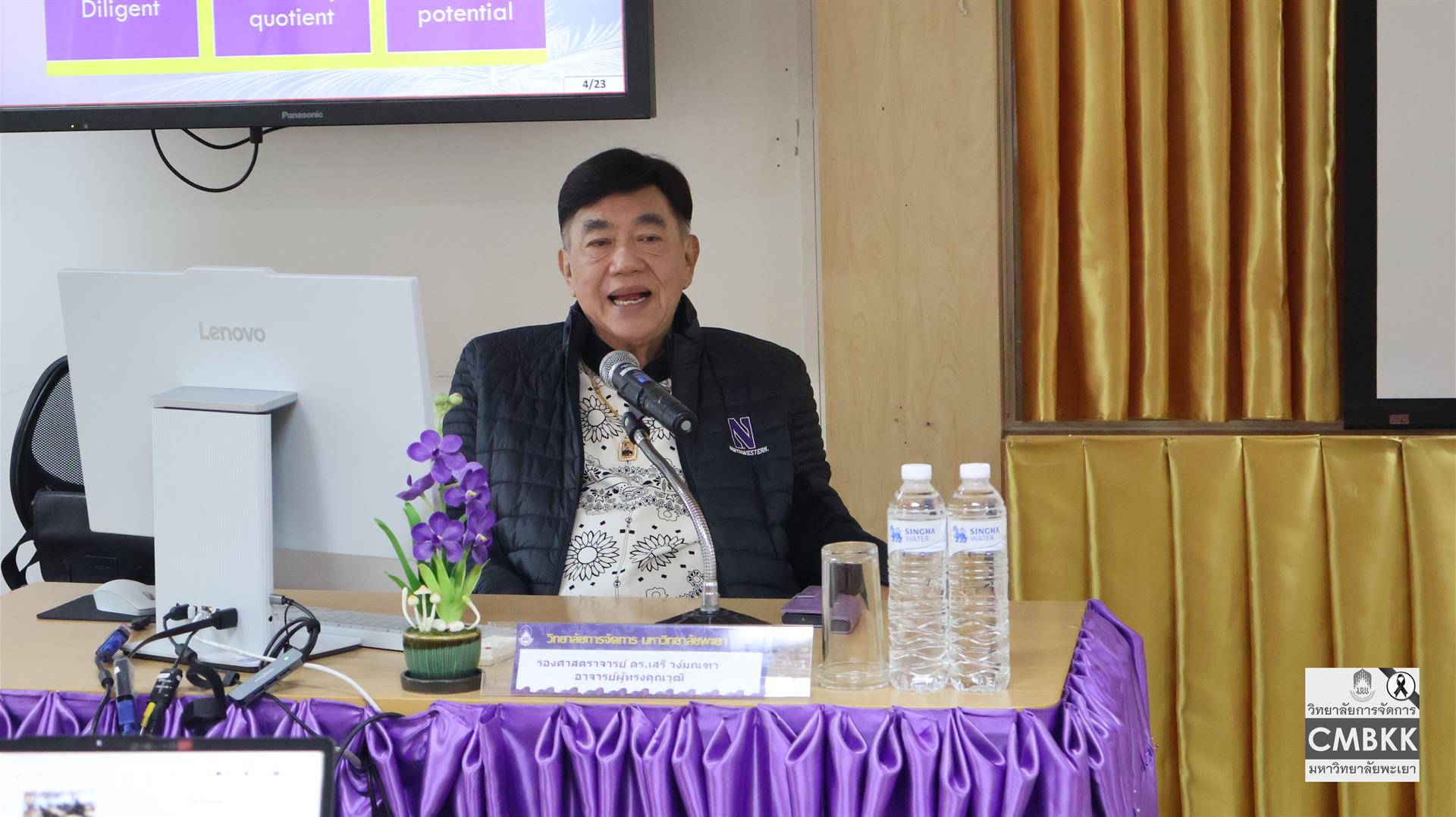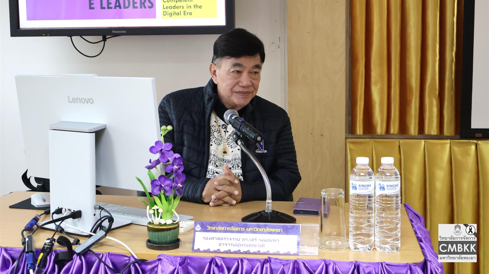 วันเสาร์ที่ 6 ธันวาคม 2568 เวลา 09.00 – 12.00 น. วิทยาลัยการจัดการ มหาวิทยาลัยพะเยา หลักสูตรการศึกษามหาบัณฑิต สาขาวิชาการบริหารการศึกษา ได้จัดการบรรยายพิเศษในรายวิชาความเป็นผู้นำทางวิชาการ โดยได้รับเกียรติจาก รองศาสตราจารย์ ดร.เสรี วงษ์มณฑา อาจารย์ประธานหลักสูตร ปร.ด. / ศศ.ม. สาขาวิชาการจัดการการท่องเที่ยว โรงแรม และธุรกิจบริการ ผู้เชี่ยวชาญด้านภาวะผู้นำ การสื่อสาร และการบริหารยุคใหม่ บรรยายในหัวข้อ “E Leader”