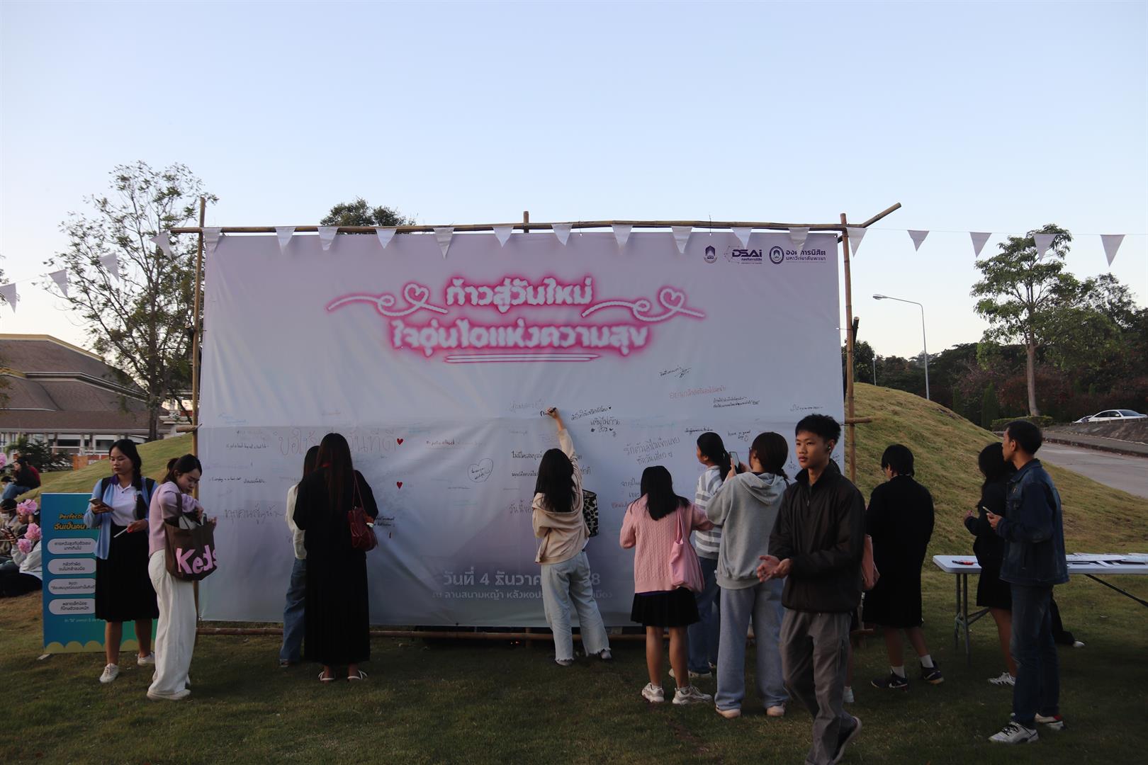 เมื่อวันที่ 4 ธันวาคม 2568 กองกิจการนิสิต ร่วมกับ องค์การนิสิตมหาวิทยาลัยพะเยา ได้จัดกิจกรรมสุดพิเศษ “ก้าวสู่วันใหม่ ใจอุ่นไอแห่งความสุข” และ UP Camping ครั้งที่ 3 ณ ลานสนามหญ้า หลังหอประชุมพญางำเมือง มหาวิทยาลัยพะเยา