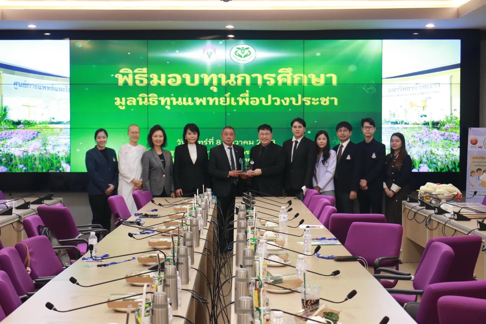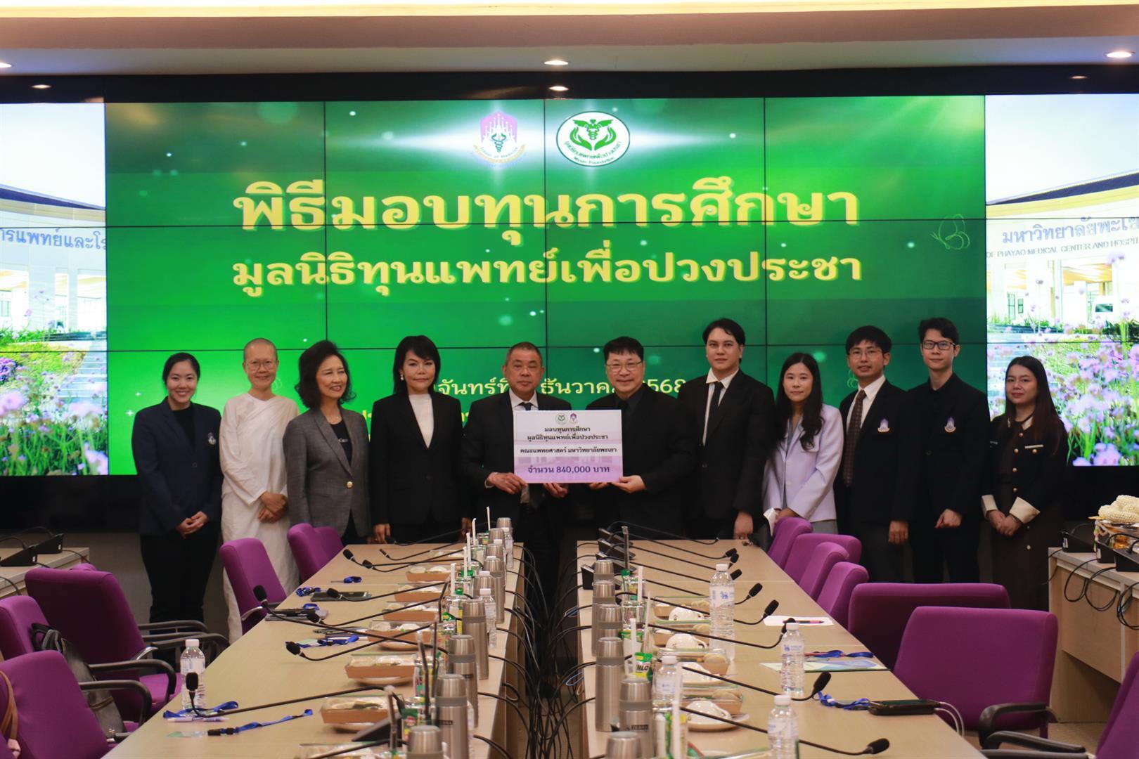 วันที่ 8 ธันวาคม 2568 คณะแพทยศาสตร์ มหาวิทยาลัยพะเยา จัดพิธีมอบทุนการศึกษาจาก มูลนิธิทุนแพทย์เพื่อปวงประชา ประจำปี 2568 เพื่อสนับสนุนนิสิตแพทย์ที่มีความมุ่งมั่นในการศึกษา จำนวน 14 ทุน รวมมูลค่าทั้งสิ้น 840,000 บาท โดยมี รศ.นพ.สมศักดิ์ เชาว์วิศิษฐ์เสรี คณบดีคณะแพทยศาสตร์ พร้อมด้วยคณะผู้บริหาร อาจารย์แพทย์ และนิสิตคณะแพทยศาสตร์ ร่วมให้การต้อนรับคณะกรรมการมูลนิธิฯ และผู้มอบทุน การมอบทุนการศึกษาในครั้งนี้สะท้อนถึงความมุ่งมั่นของคณะแพทยศาสตร์ มหาวิทยาลัยพะเยา ในการสร้างบุคลากรทางการแพทย์ที่มีคุณภาพและคุณธรรม เพื่อให้นิสิตแพทย์ได้รับโอกาสทางการศึกษาอย่างเต็มที่ และเติบโตเป็นแพทย์ที่พร้อมกลับมารับใช้สังคมและประเทศชาติ ตามวัตถุประสงค์ของมูลนิธิและมหาวิทยาลัย ณ ห้องประชุมศาสตราจารย์พิเศษ ดร.มณฑล สงวนเสริมศรี ชั้น 2 โรงพยาบาลมหาวิทยาลัยพะเยา