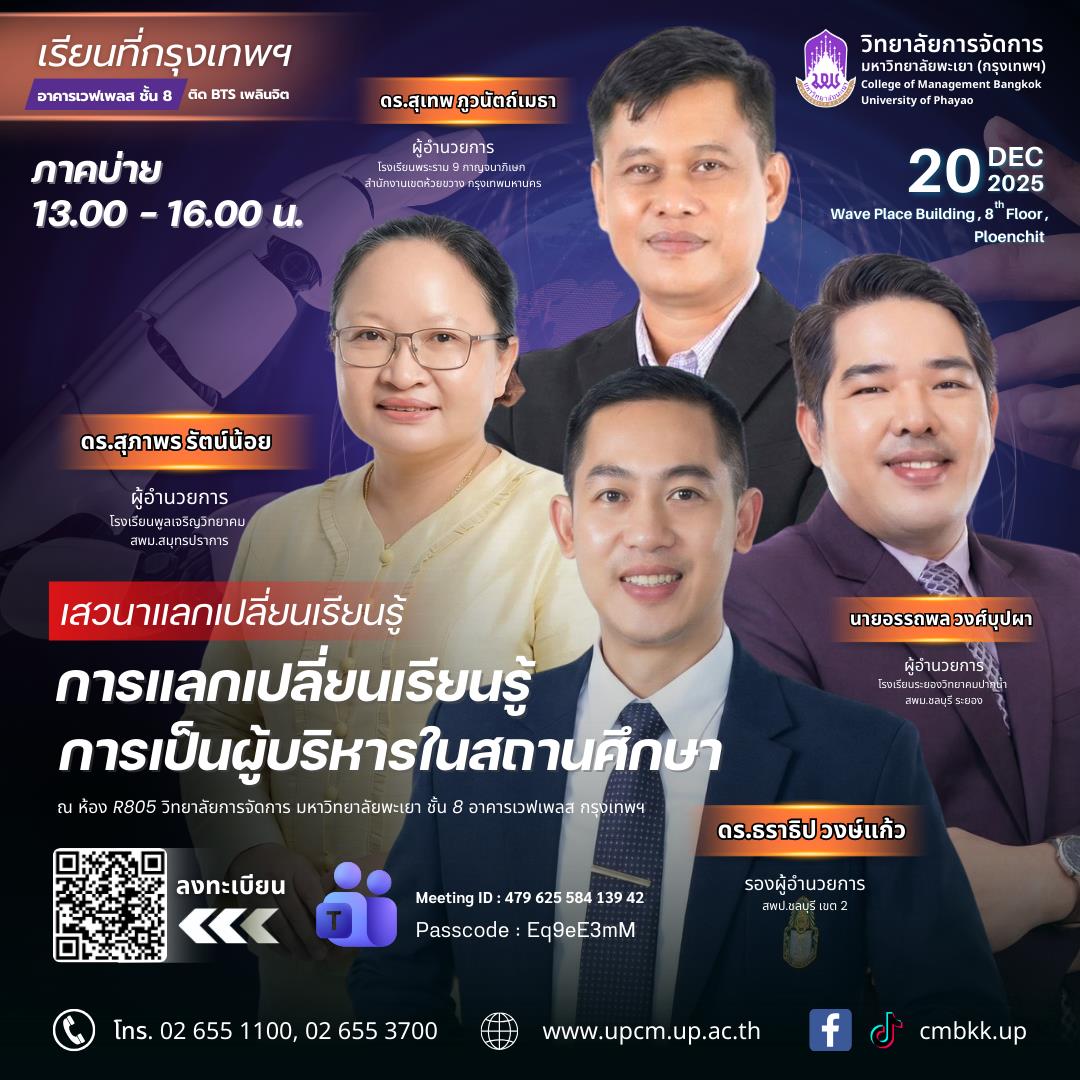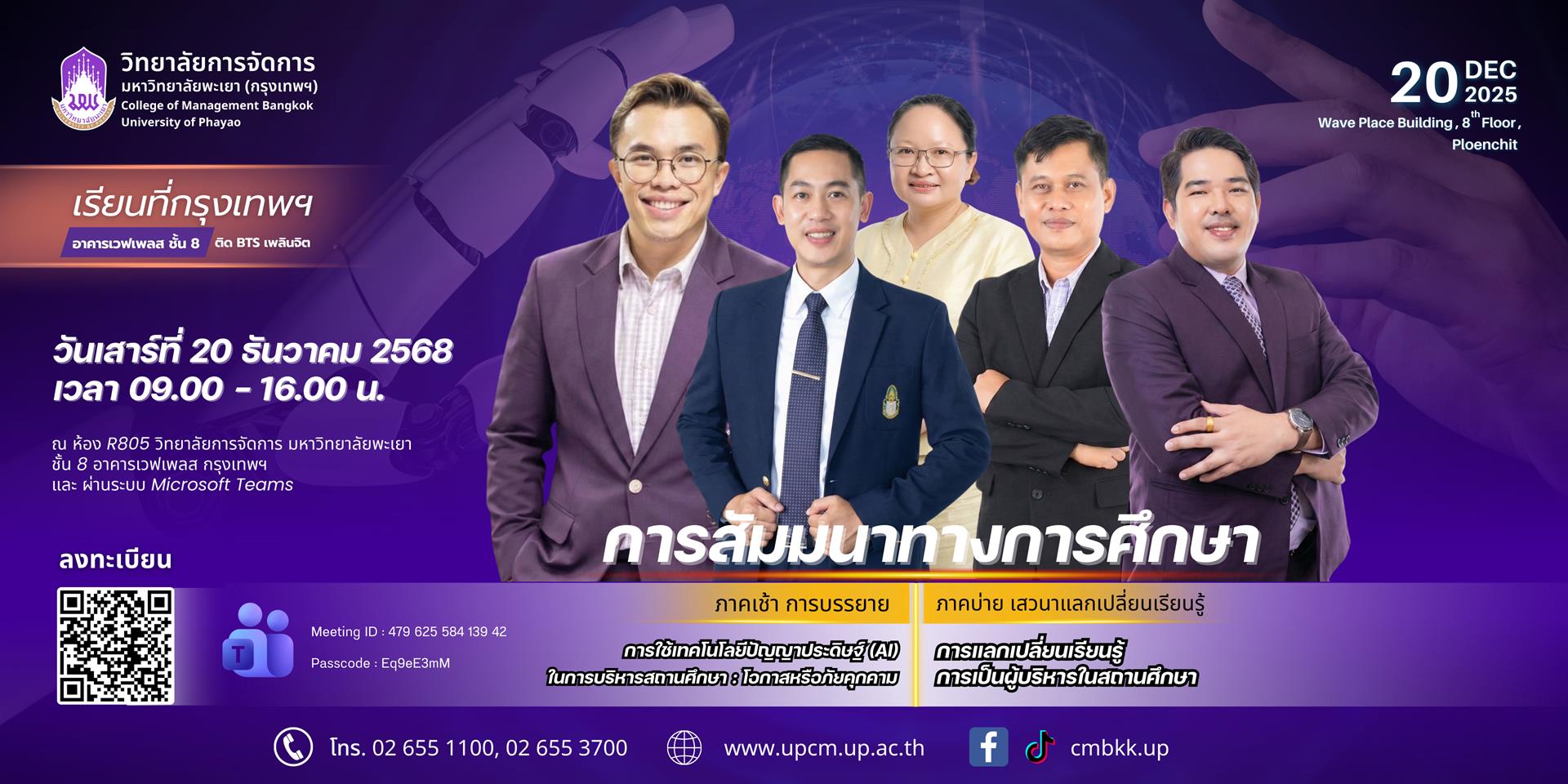 On-site : ห้อง R805 วิทยาลัยการจัดการ มหาวิทยาลัยพะเยา