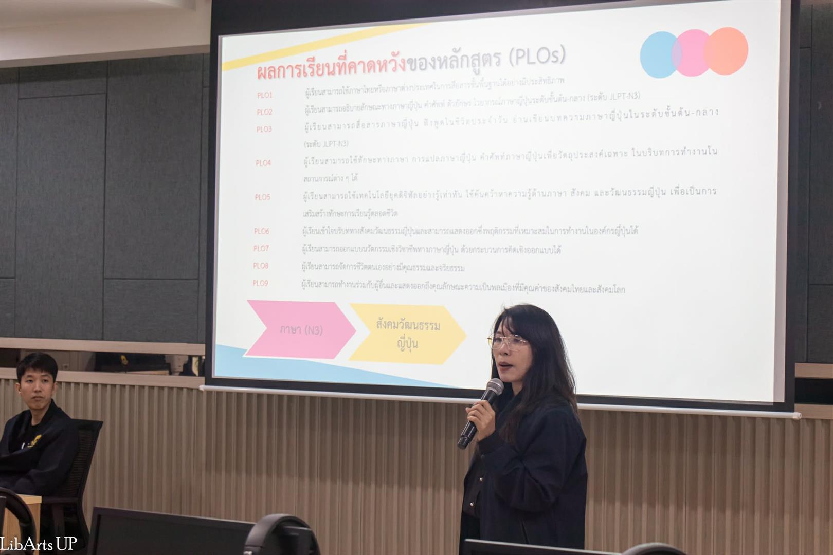 The welcoming team was led by Asst. Prof. Dr. Chittima Kaweera, Dean of the School of Liberal Arts, along with Mr. Nattaworn Wongjittratorn, Associate Dean for Student Quality, and the chairs of the undergraduate programs: Dr. Benjaporn Thepseenu (Assistant Dean for Academic Affairs and Chair of the B.A. Program in English), Dr. Jarukan Jitwongnan (Chair of the B.A. Program in French), Dr. Warunya Yingyongsak (Chair of the B.A. Program in Thai), Ms. Phanphitchaya Phanyafu (Chair of the B.A. Program in Japanese), and a representative from the B.A. Program in Chinese.