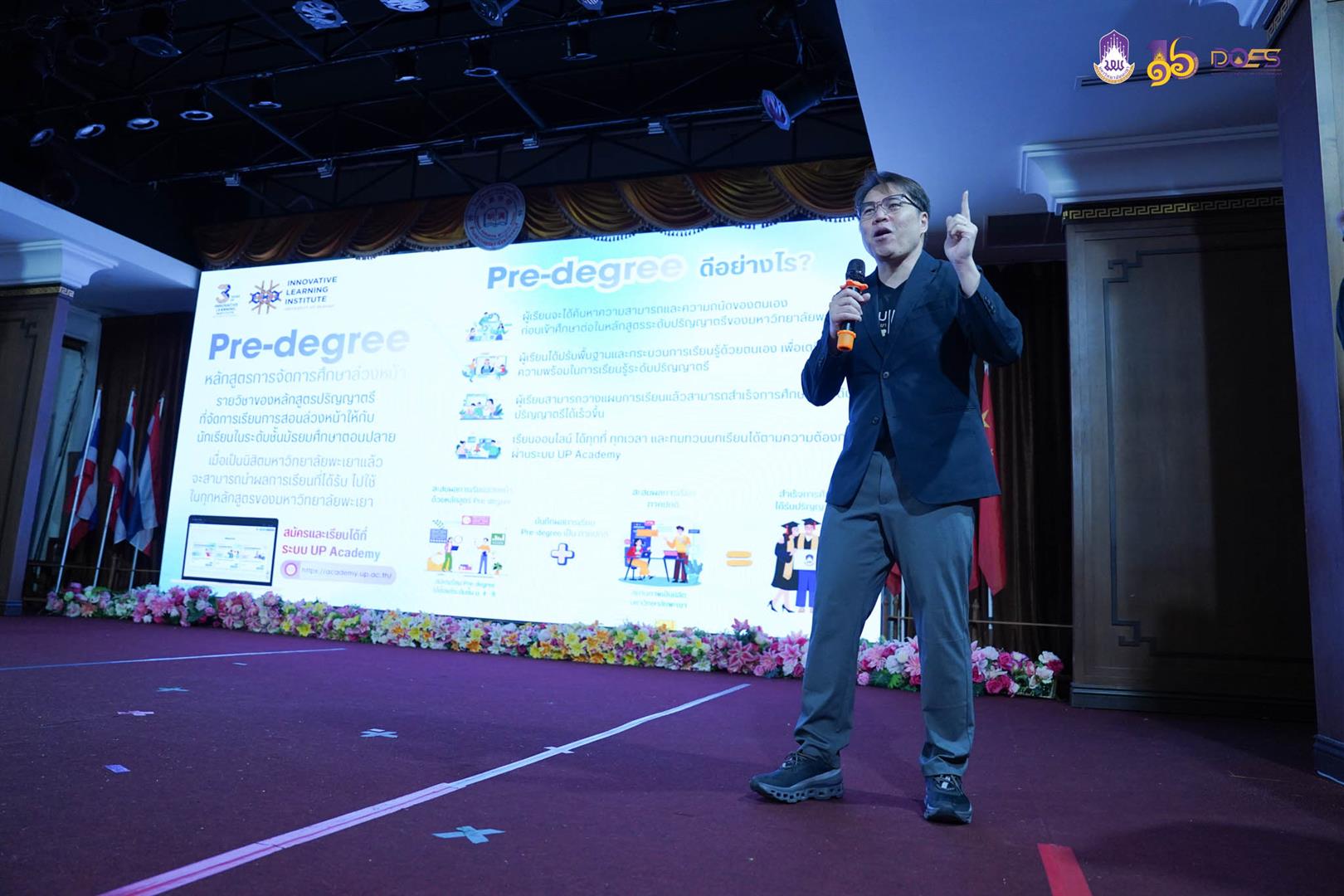 รองศาสตราจารย์ ดร.สุภกร พงศบางโพธิ์ อธิการบดีมหาวิทยาลัยพะเยา ได้บรรยายในหัวข้อ “Good environment nurtures individuals toward excellence” สภาวะแวดล้อมที่ดีช่วยหล่อหลอมให้เป็นคนดีคนเก่ง” กล่าวถึง การสร้างคนดี คนเก่งอย่างสมดุล ส่งเสริมให้นิสิต “รับผิดชอบ มีน้ำใจ มีส่วนร่วม และมีแรงบันดาลใจในการเรียนรู้” ควบคู่กับพัฒนาทักษะที่จำเป็นในศตวรรษที่ 21 จนเกิดเป็น “คนดี คนเก่ง” ตามอัตลักษณ์ที่มหาวิทยาลัยมุ่งหวัง อีกทั้งมหาวิทยาลัยพะเยายึดปรัชญาการจัดการศึกษา “ประสบการณ์สร้างปัญญา” และหลัก “ดำรงชีวิตด้วยปัญญาประเสริฐที่สุด” พร้อมทั้งการพัฒนาการจัดการเรียนการสอนและพัฒนาอาจารย์กรอบอาจารย์มืออาชีพ มหาวิทยาลัยพะเยา (UP-PSF) ภายใต้สภาพแวดล้อมที่ส่งเสริมการเรียนรู้ตลอดชีวิต (Lifelong Learning) นวัตกรรมเพื่อสังคม (Social Innovation) การได้รับการยอมรับในระดับโลก (World Recognition) และ การพัฒนาที่ยั่งยืน (Sustainable Development) ความสำเร็จของมหาวิทยาลัยพะเยาที่ได้เข้าสู่การจัดอันดับมหาวิทยาลัยโลก และกระบวนการจัดการศึกษาที่ตอบรับกับบริบทสังคมที่เปลี่ยนแปลงไป