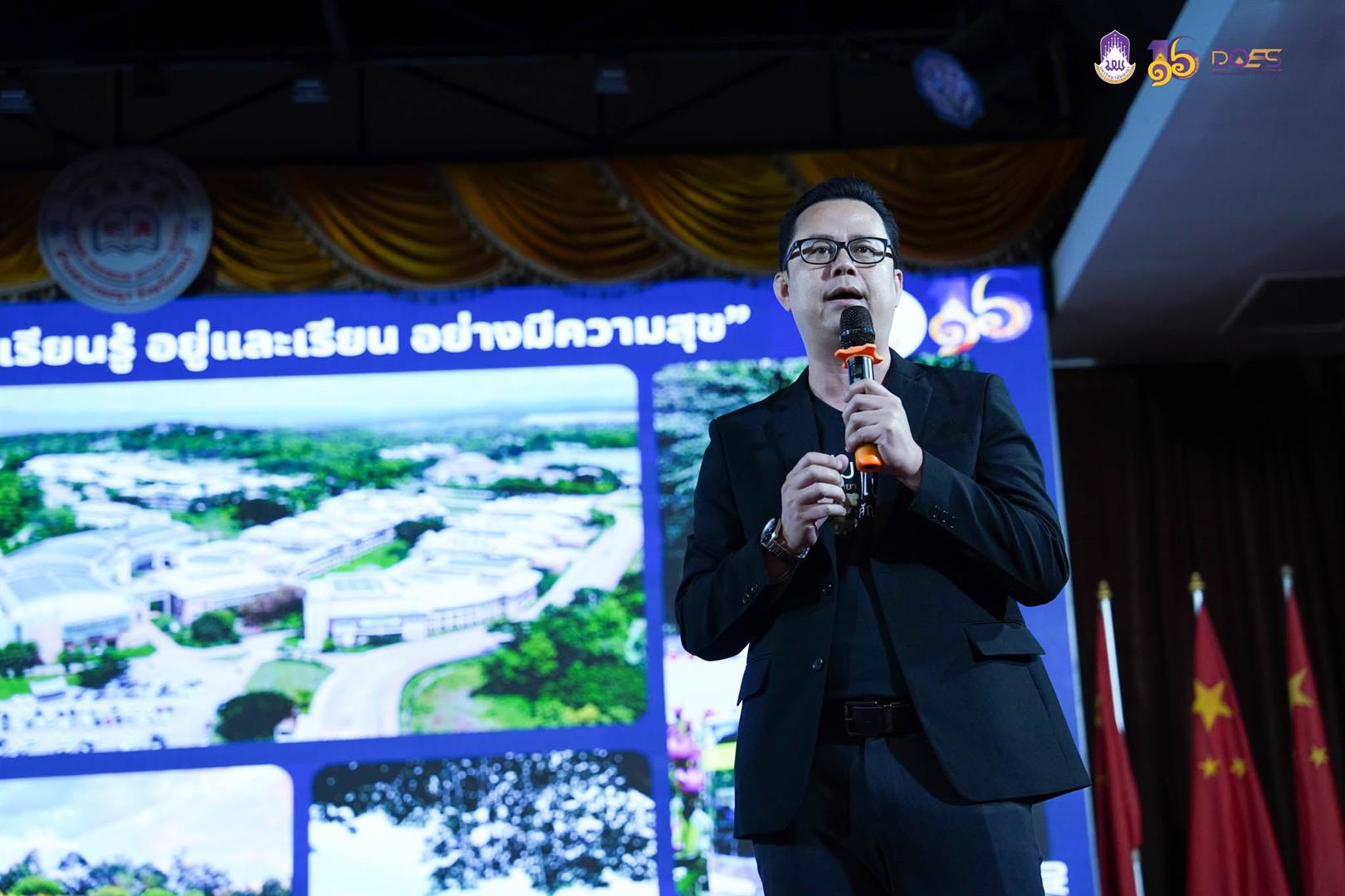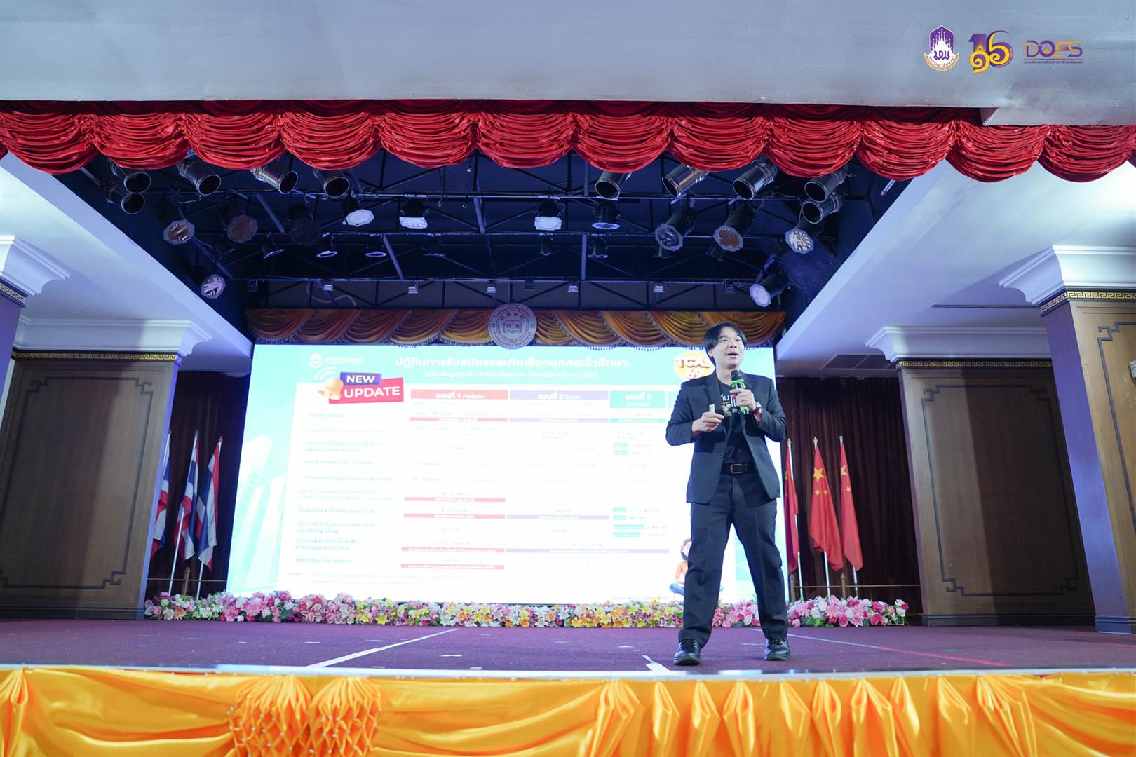 ช่วงสุดท้าย เป็นการชี้แจงเรื่อง “แนวทางการรับเข้าศึกษาในมหาวิทยาลัยพะเยา ปีการศึกษา 2569” โดย ผู้ช่วยศาสตราจารย์ ดร.นรินธน์ นนทมาลย์ ผู้ช่วยอธิการบดี