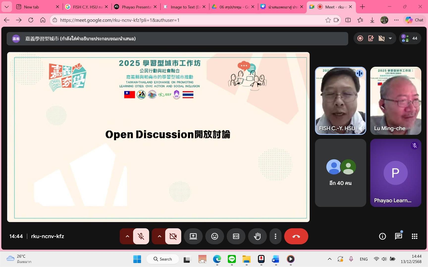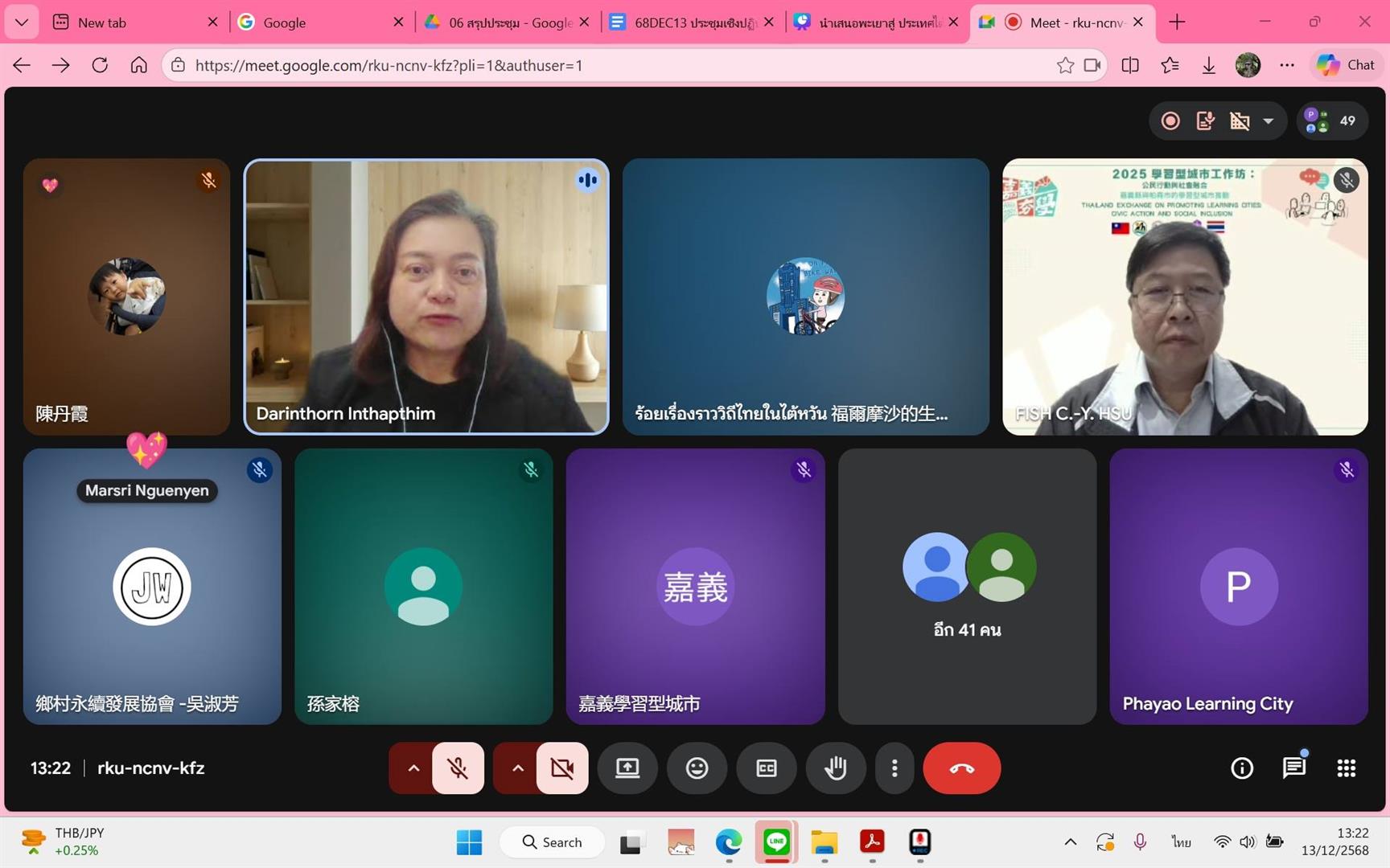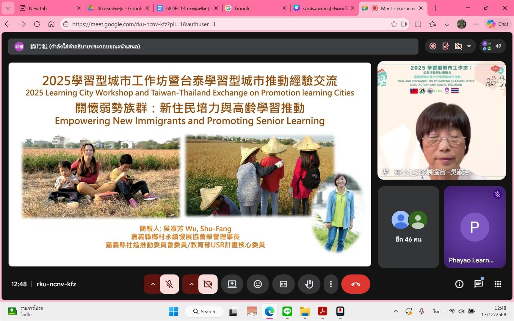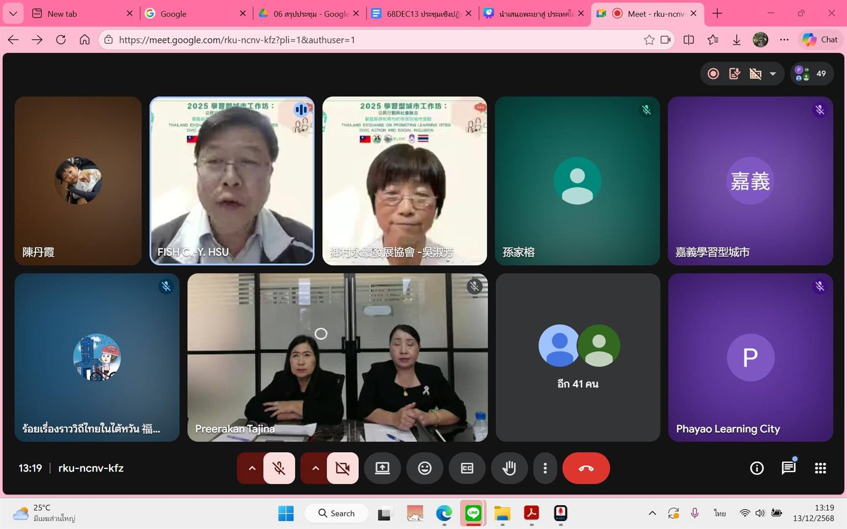 จังหวัดพะเยา จัดการประชุมเชิงปฏิบัติการ “เมืองแห่งการเรียนรู้ ปี 2025 และการแลกเปลี่ยนประสบการณ์การส่งเสริมเมืองแห่งการเรียนรู้ระหว่างไต้หวัน–ไทย” เพื่อเสริมสร้างความร่วมมือระดับเมืองด้านการเรียนรู้ตลอดชีวิต (Lifelong Learning) และการพัฒนาที่ยั่งยืน ระหว่าง เมืองพะเยา ประเทศไทย และ เทศมณฑลเจียอี้ ไต้หวัน เมื่อวันที่ 13 ธันวาคม 2568 ที่ผ่านมา ผ่านระบบออนไลน์
