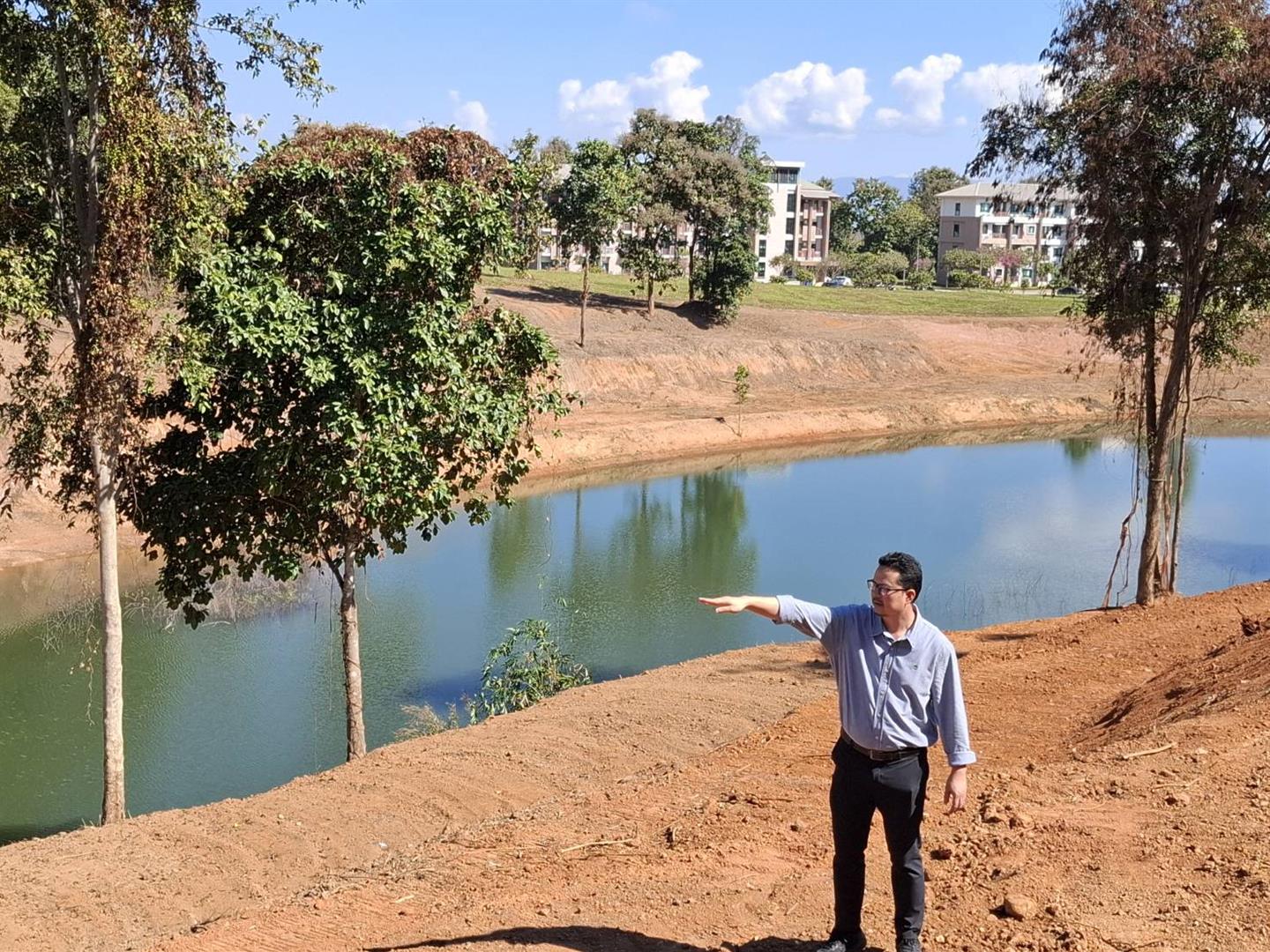 วันที่ 5 มกราคม 2569 กองอาคารสถานที่ มหาวิทยาลัยพะเยา ลงพื้นที่ตรวจงานตามแผนปรับปรุงการก่อสร้าง นำโดย ผู้ช่วยศาสตราจารย์สุวิทย์ ปัญญาวงศ์ รองอธิการบดีฝ่ายสิ่งแวดล้อมและภูมิทัศน์ พร้อมด้วย หัวหน้างานสวนและภูมิทัศน์ ลงพื้นที่ตรวจงานการพัฒนารอบพื้นที่อ่างเก็บน้ำโรงพยาบาลมหาวิทยาลัยพะเยาซึ่งอยู่ระหว่างตึกผู้ป่วยนอก – หอพักบุคลากรทางการแพทย์ ตามโครงการงานจ้างเครื่องจักรกลปฏิบัติงานปรับปปรุงภูมิทัศน์บริเวณด้านหลังสนามกีฬา