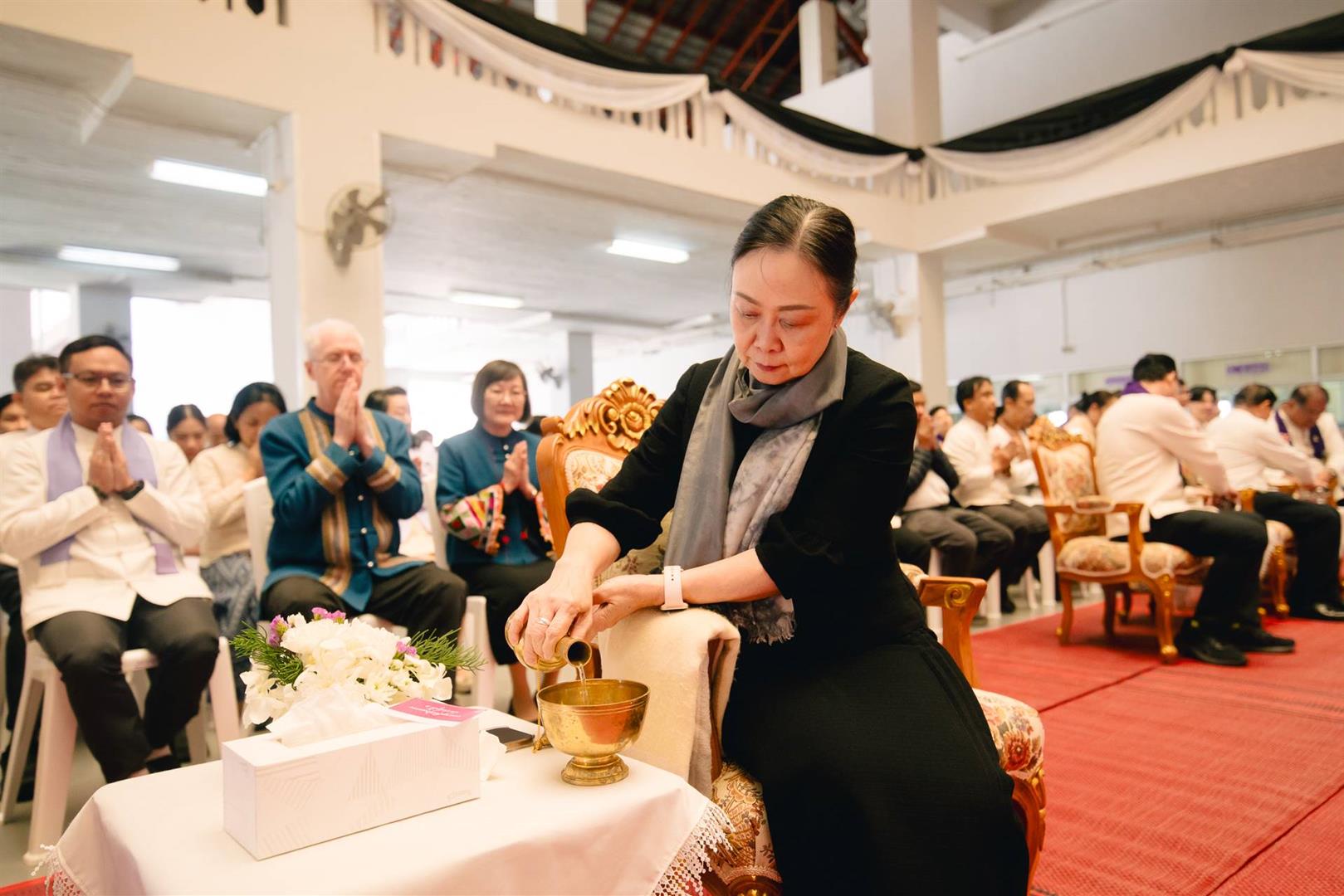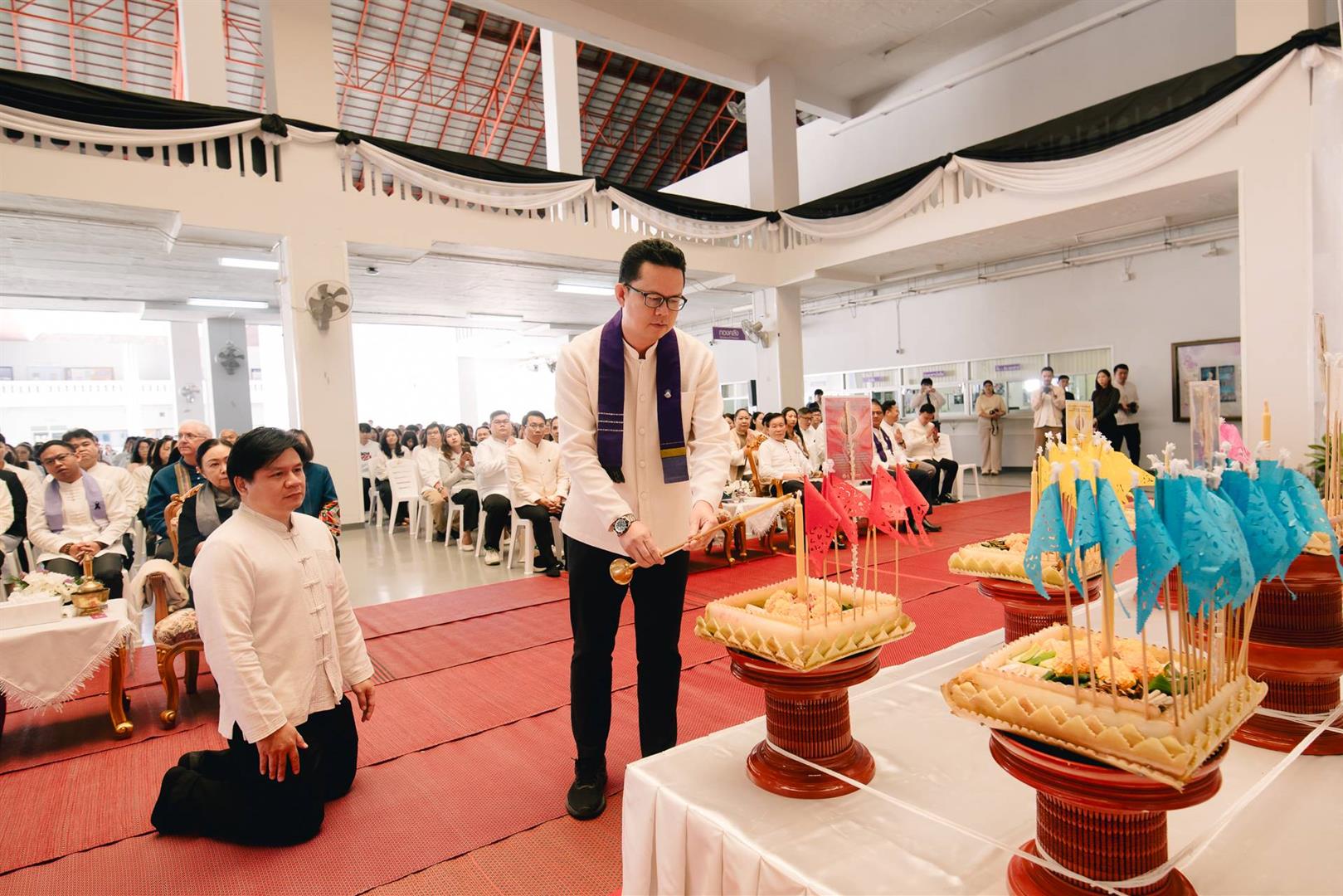 ในการนี้ กองอาคารสถานที่ นำโดย ผู้ช่วยศาสตราจารย์สุวิทย์ ปัญญาวงศ์ รองอธิการบดีฝ่ายสิ่งแวดล้อมและภูมิทัศน์ พร้อมด้วย นายณัฐวุฒิ สมยาโรน ผู้ช่วยอธิการบดี, นายจีระวัฒน์ หมั่นงาน ผู้อำนวยการกองอาคารสถานที่ หัวหน้างาน และบุคลากรในสังกัด เข้าร่วมพิธีอย่างพร้อมเพรียง