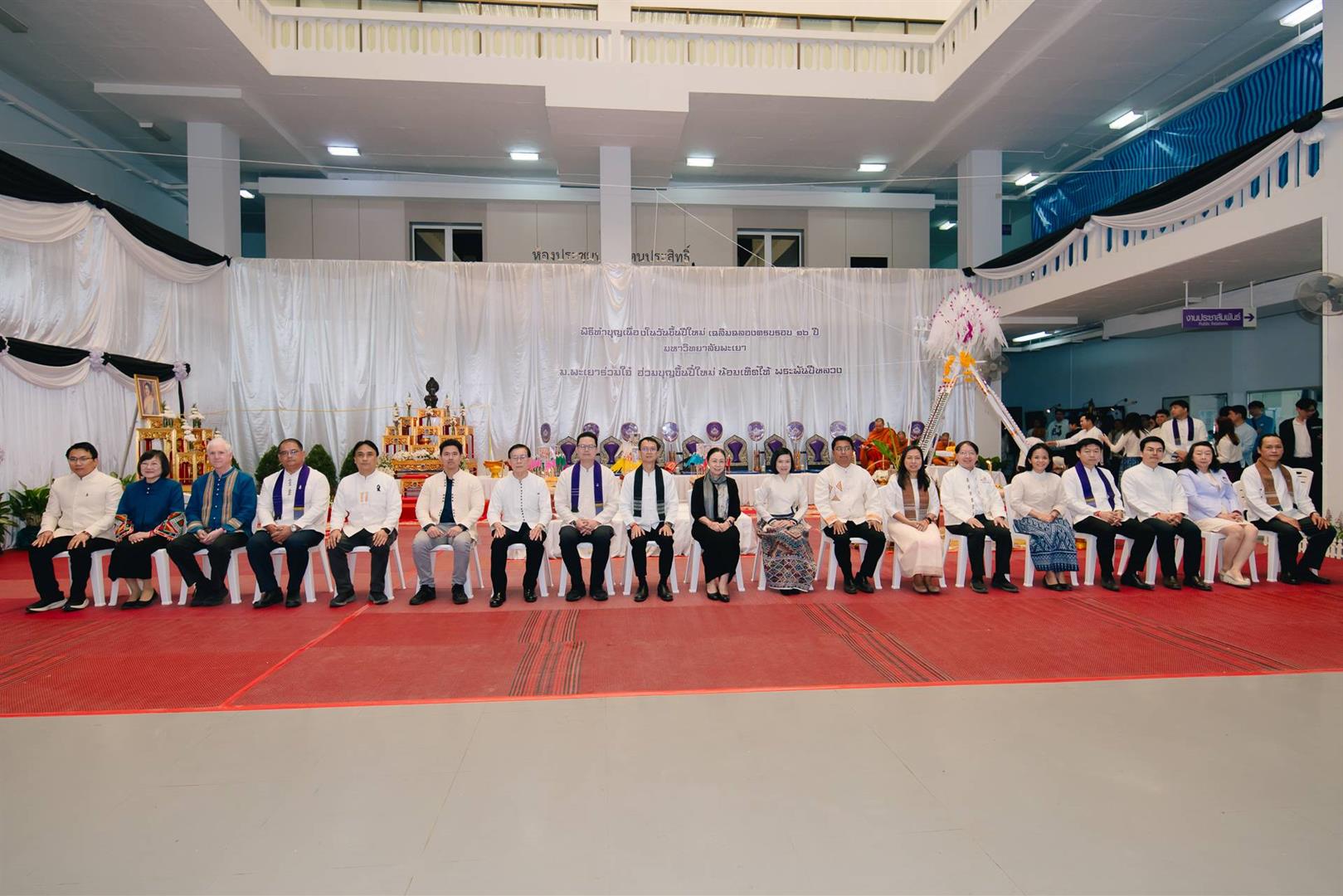 วันที่ 9 มกราคม 2569 เวลา 09.00 น.กองอาคารสถานที่ มหาวิทยาลัยพะเยา เข้าร่วมพิธีทำบุญเนื่องในวันขึ้นปีใหม่ ประจำปี พ.ศ. 2569 และพิธีเฉลิมฉลองครบรอบ 16 ปี แห่งการสถาปนามหาวิทยาลัยพะเยา ซึ่งจัดโดยกองกลาง มหาวิทยาลัยพะเยา ณ ลานอเนกประสงค์ ชั้น 1 อาคารสำนักงานอธิการบดี มหาวิทยาลัยพะเยา โดยได้รับเกียรติจาก รองศาสตราจารย์ ดร.สุภกร พงศบางโพธิ์ อธิการบดีมหาวิทยาลัยพะเยา เป็นประธานในพิธี โดยมีคณะผู้บริหาร คณาจารย์ และบุคลากร จากทุกหน่วยงานภายในมหาวิทยาลัย เข้าร่วมกิจกรรมอย่างพร้อมเพรียง