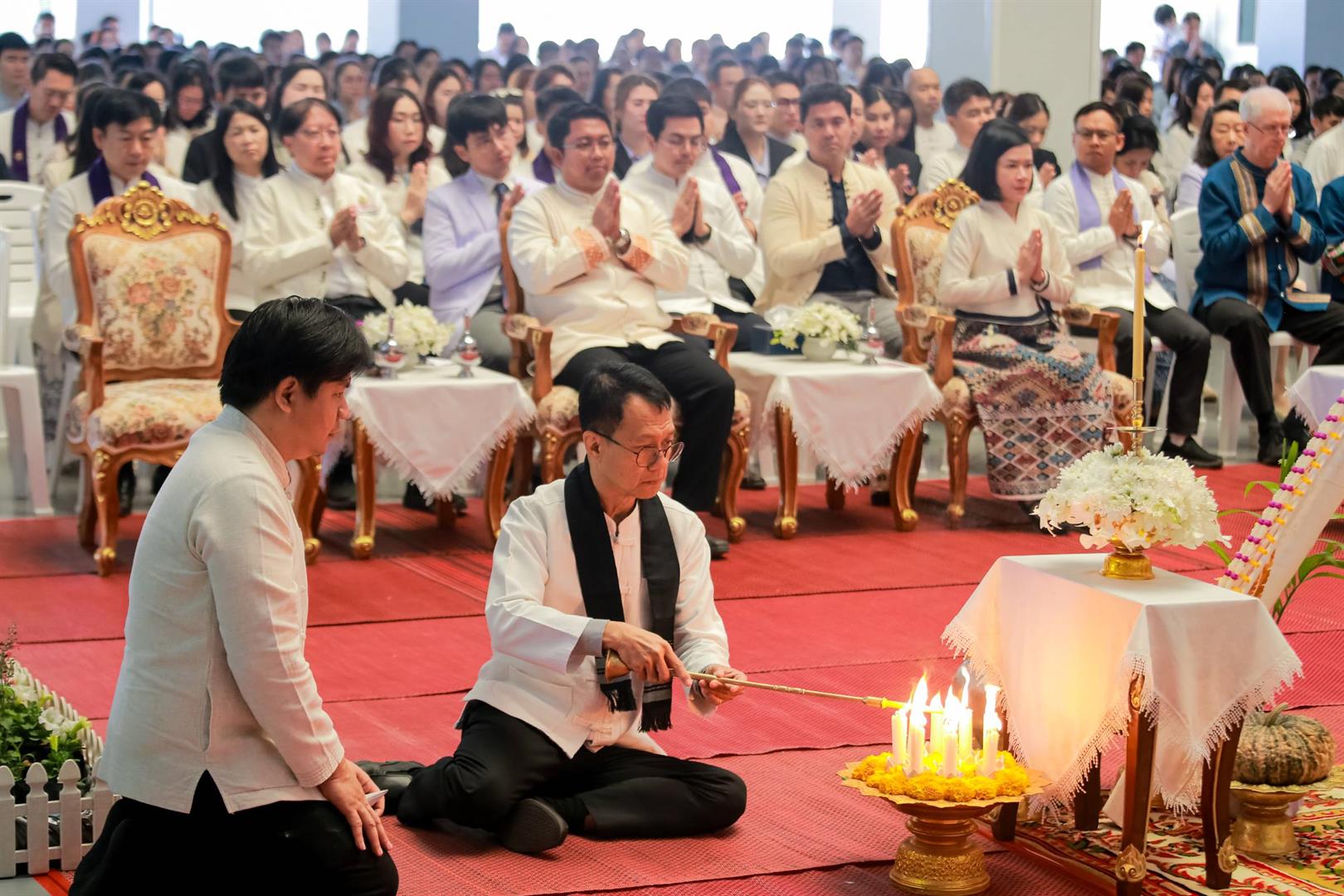 ทั้งนี้ ได้รับเกียรติจาก รองศาสตราจารย์ ดร.สุภกร พงศบางโพธิ์ อธิการบดีมหาวิทยาลัยพะเยา เป็นประธานในพิธี โดยได้ประกอบพิธีจุดธูปเทียนบูชาพระรัตนตรัย และถวายเครื่องไทยธรรมแด่พระสงฆ์ พิธีดังกล่าวสะท้อนถึงการผสานคุณค่าทางศาสนา วัฒนธรรม และจิตสาธารณะ เข้ากับการบริหารองค์กรอย่างมีดุลยภาพ อันเป็นรากฐานสำคัญในการสร้างความเข้มแข็งและความสามัคคีภายในมหาวิทยาลัย