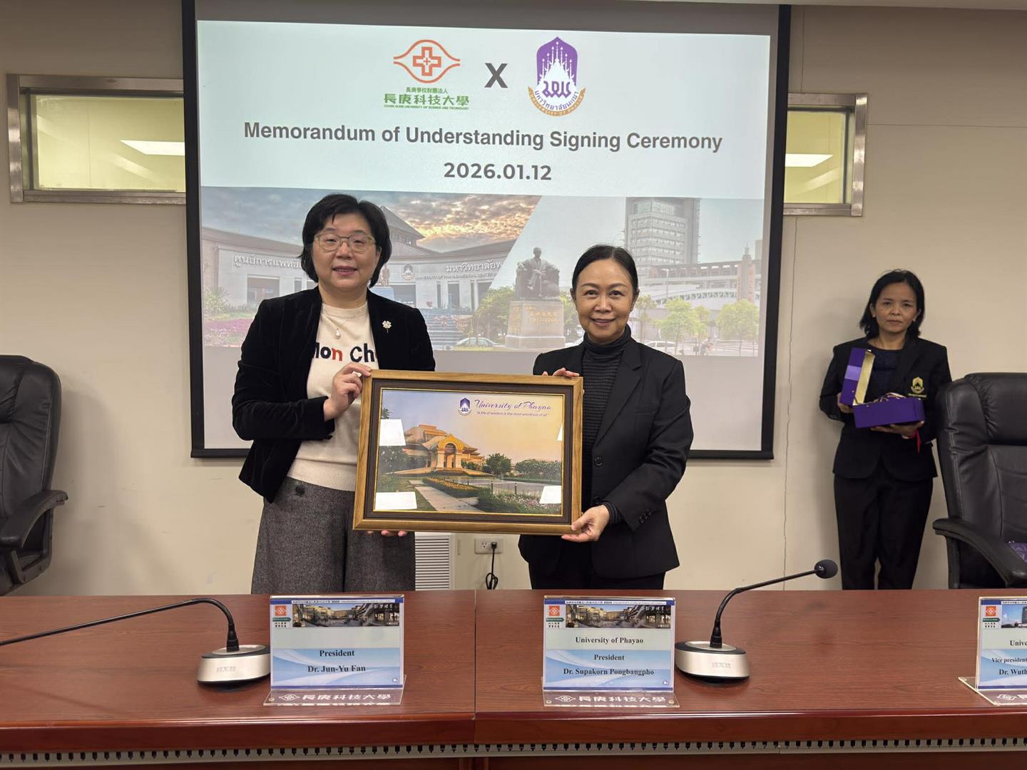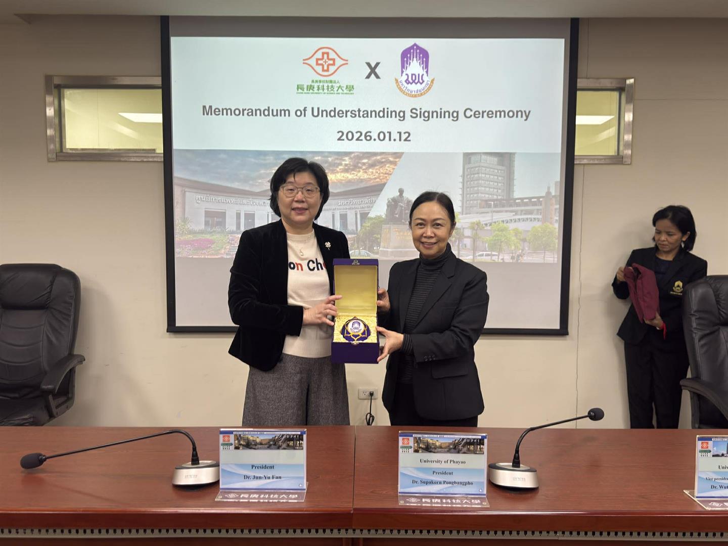 เมื่อวันที่ 12 มกราคม 2569 (January 12, 2026) มหาวิทยาลัยพะเยา (University of Phayao: UP) โดย รศ.ดร.สุภกร พงศบางโพธิ์ อธิการบดีมหาวิทยาลัยพะเยา เข้าร่วมพิธีลงนามบันทึกความเข้าใจ (Memorandum of Understanding: MOU) กับ Chang Gung University of Science and Technology (CGUST) สาธารณรัฐจีน (ไต้หวัน) โดยมี Dr. Jun-Yu Fan อธิการบดีมหาวิทยาลัย CGUST ร่วมในพิธีลงนาม เพื่อส่งเสริมความร่วมมือระหว่างสองสถาบันในระดับนานาชาติ