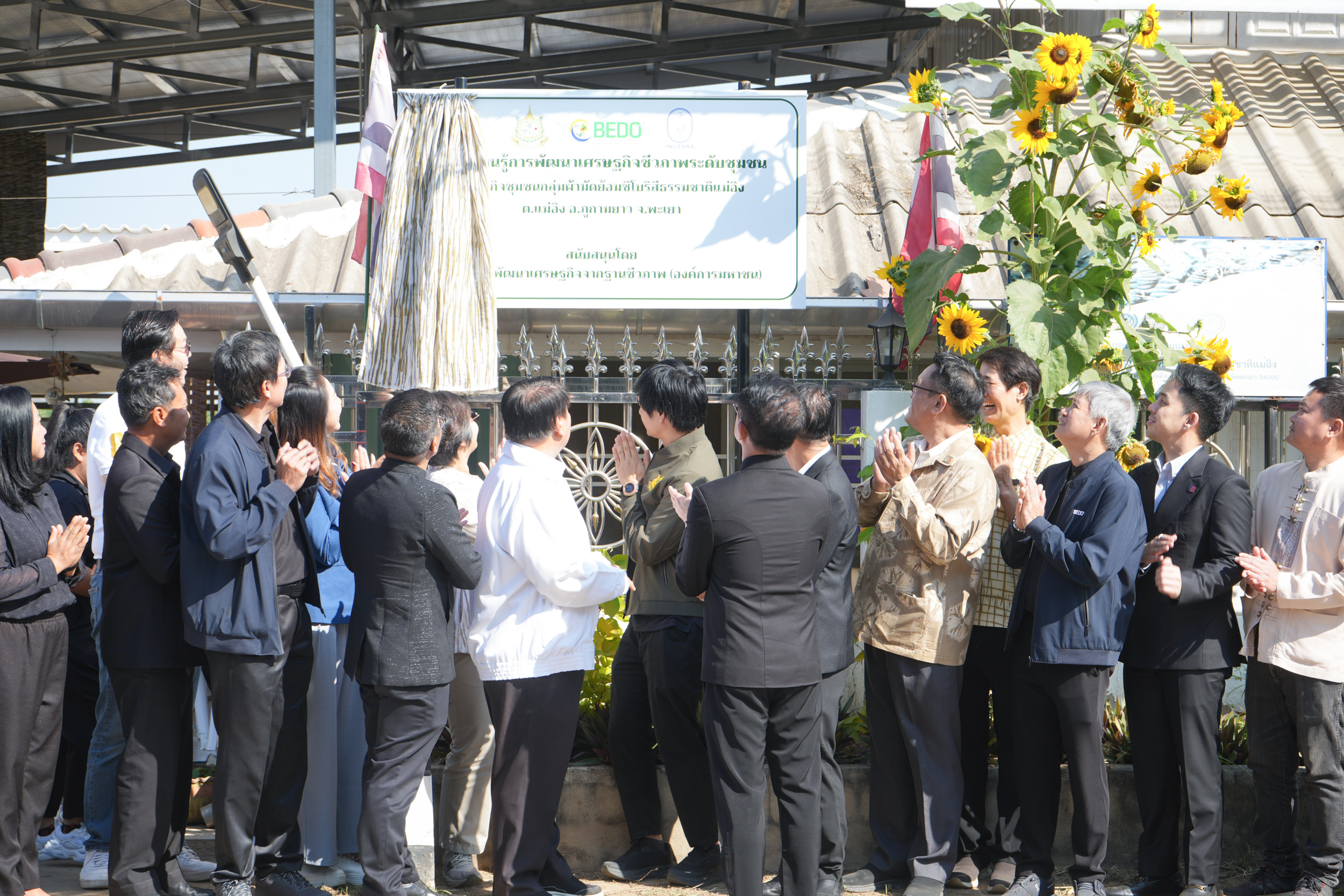 โอกาสนี้ได้รับเกียรติจาก ดร.ธนิต ชังถาวร ผู้อำนวยการสำนักงานพัฒนาเศรษฐกิจจากฐานชีวภาพ (องค์การมหาชน) เป็นประธานกล่าวเปิดศูนย์เรียนรู้การพัฒนาเศรษฐกิจชีวภาพระดับชุมชน โดยเน้นย้ำความสำคัญของการนำทรัพยากรชีวภาพและความหลากหลายทางชีวภาพมาสร้างมูลค่าเพิ่มผ่านองค์ความรู้ วิจัย และนวัตกรรม เพื่อขับเคลื่อนเศรษฐกิจฐานรากให้เติบโตอย่างยั่งยืน จากนั้น นางสาวอรอาภา โล่ห์วีระ ผู้ว่าราชการจังหวัดพะเยา ได้กล่าวแสดงความยินดี พร้อมชื่นชมความร่วมมือของทุกภาคส่วนที่ร่วมกันพัฒนาศูนย์เรียนรู้แห่งนี้ให้เป็นต้นแบบสำคัญของจังหวัดพะเยา ในการส่งเสริมอาชีพ สร้างรายได้ และอนุรักษ์ภูมิปัญญาท้องถิ่นควบคู่กับการดูแลสิ่งแวดล้อม