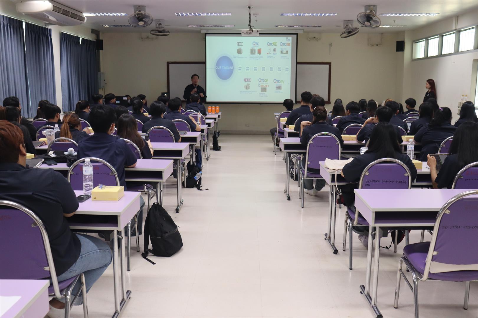กิจกรรมดังกล่าวยังได้รับเกียรติจาก คุณธนาวัฒน์ คงเนียม (Domestic Sales Manager, QTC Energy POL) เป็นวิทยากรบรรยายพิเศษ แนะนำบทบาท ภารกิจ และทิศทางการดำเนินงานของ บริษัท คิวทีซี เอนเนอร์ยี่ จำกัด (มหาชน) ซึ่งเป็นองค์กรชั้นนำด้านการผลิตหม้อแปลงไฟฟ้าและอุปกรณ์ระบบพลังงานของประเทศ พร้อมถ่ายทอดองค์ความรู้เชิงวิชาการควบคู่ประสบการณ์จากภาคอุตสาหกรรมจริง ผ่านหัวข้อการบรรยายที่ครอบคลุมและทันสมัย อาทิ